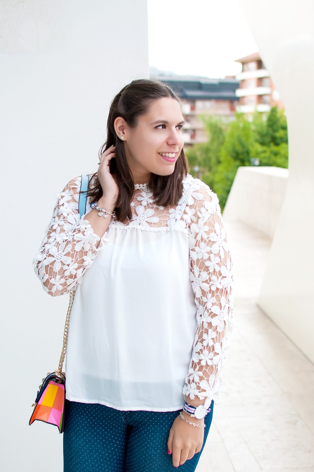 Me encanta el crochet, los combines, los puntitos… Todo. Me encanta el Look., estas muy guapa.