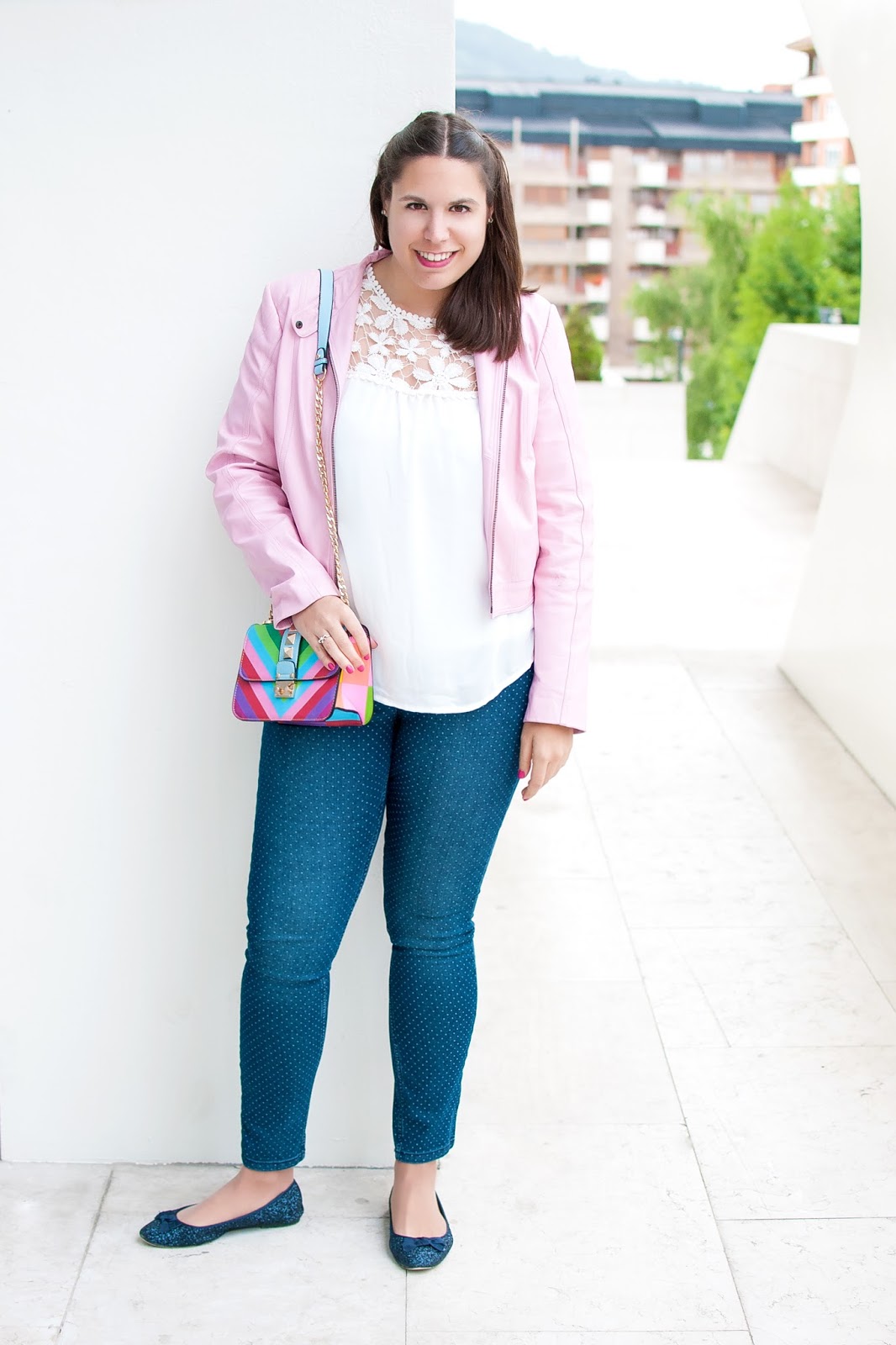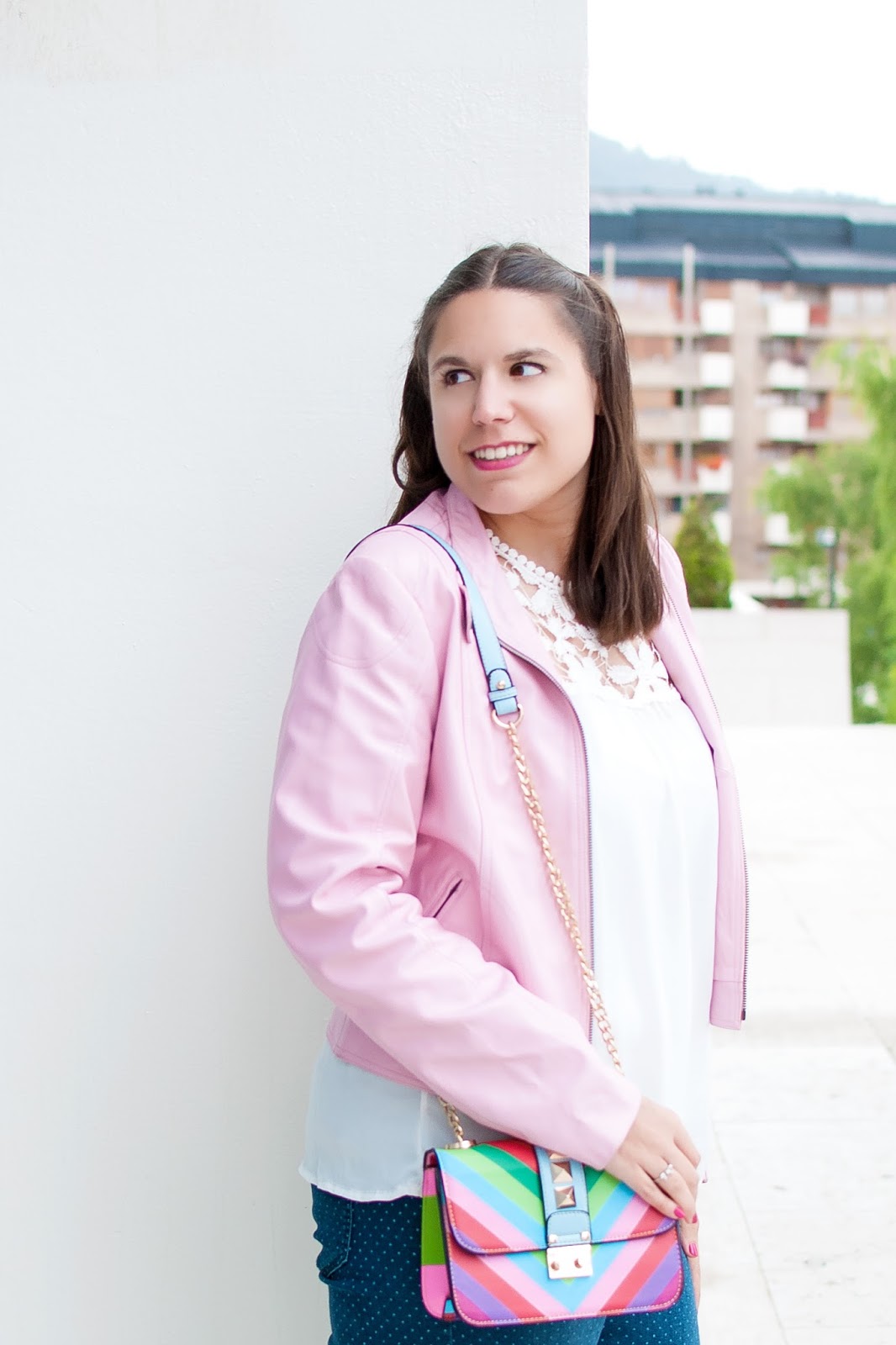 Un nuevo martes está aquí y esta vez viene acompañado de color, de mucho color. Un look alegre y que define totalmente a la primavera, que gira en torno a este precioso bolsito arcoiris. ¿A que es una monada? Lo tengo desde hace unos dos años y todavía no había salido en mi blog. ¡Raro para mí! Lo combiné con una cazadora rosa heredada de mi madre, unos jeans de lunares, mi nueva blusita bordada de Zaful y mi inseparable Daniel Wellington, que os recuerdo que hasta el 15 de junio… ¡Tenéis 15% de descuento en su web con el código «MIMALDITADULZURA»! Y además una correa nato de regalo con la compra de cualquier reloj (excepto Dapper y Petite). El escenario, el icónico edificio Calatrava, no pudo ir más acorde con este outfit. Me encanta hacer fotos allí pero también me da una pena muy grande el estado en el que está… Espero que os guste y feliz comienzo de junio ❤