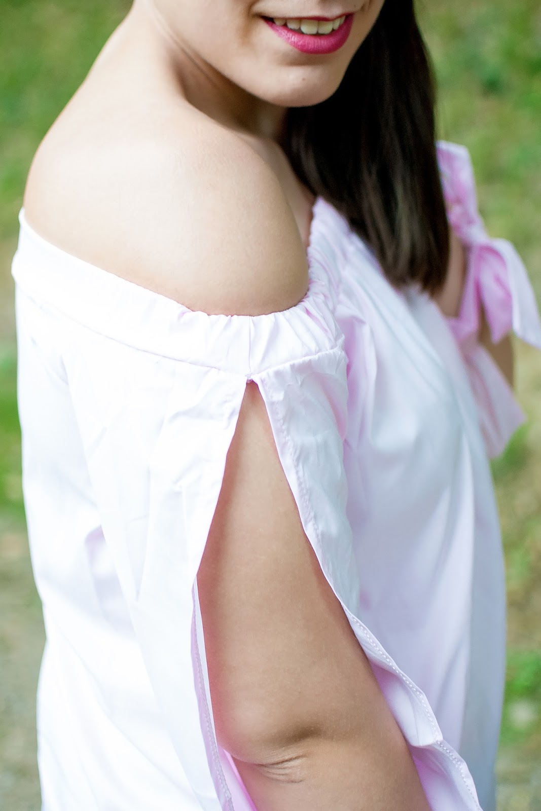 Última semana de julio y, a estas alturas del verano, no hemos visto mucho el sol por Asturias. El planning de este mes ha sido: varios días grises, uno con sol y así sucesivamente. ¡Habrá que huir de aquí para reencontrarse con él! Mientras tanto, yo os enseño un look perfecto para esos días en los que está más fresquito de lo habitual. En clave rosa, concretamente en un tono que me encanta por su dulzura: el rosa bebé. Mi nueva blusa de Zaful… ¡No puede ser más especial! Hombros al descubierto (y brazos :3) que terminan con una preciosa lazada. ¿No es maravillosa? La combiné con mis Puma Suede Heart, que todavía no habían tenido la oportunidad de aparecer por aquí, pero es que el tiempo es muy traicionero y puede pasar de hacer sol a llover en cuestión de minutos, además de que los cielos grises han reinado en este verano. ¡Ojalá venga un otoño soleado y salgan mucho más a pasear! Espero que os guste y feliz semana ❤