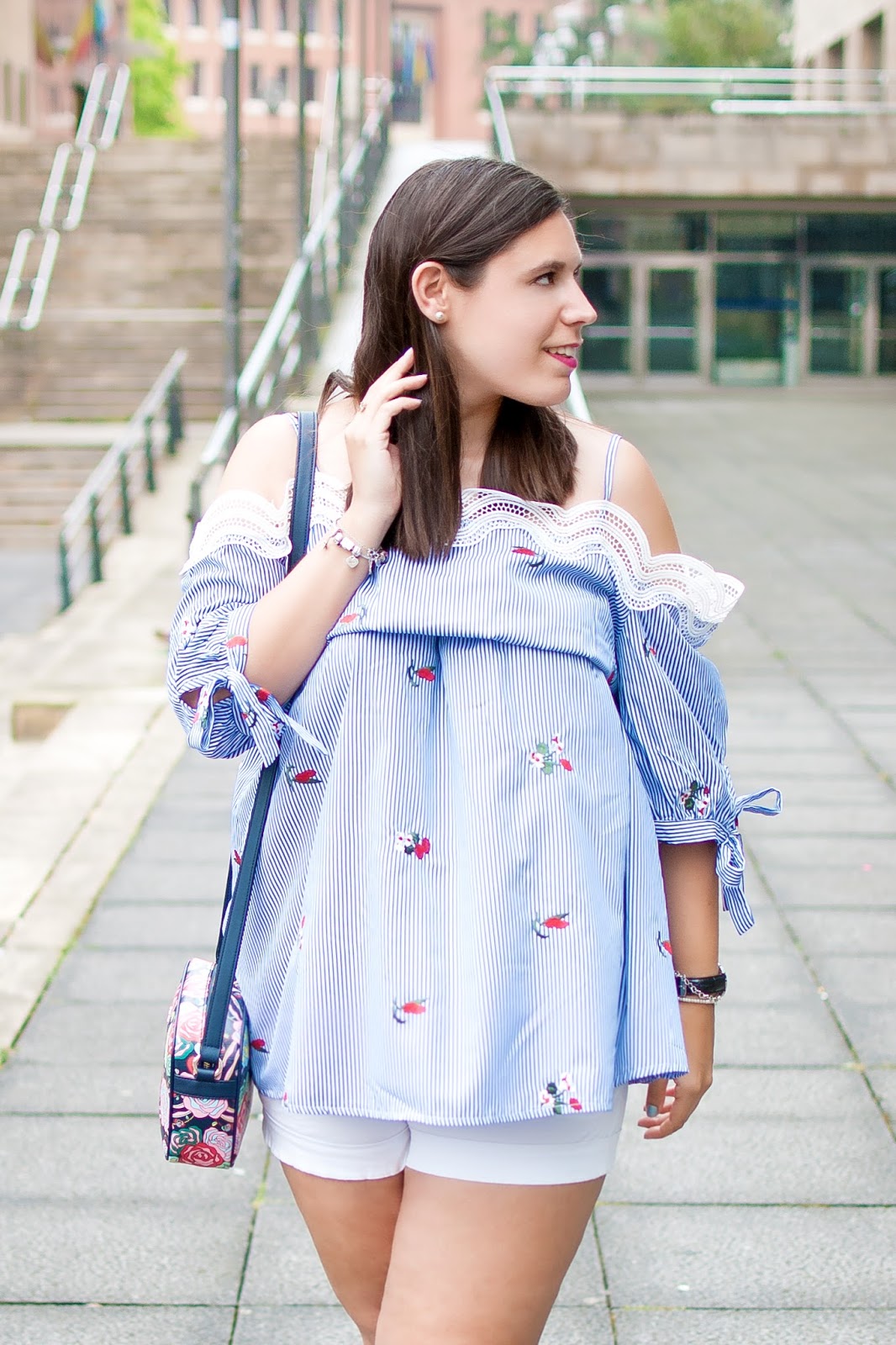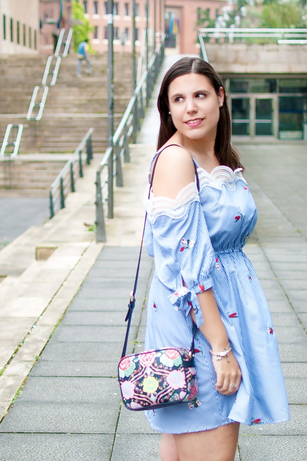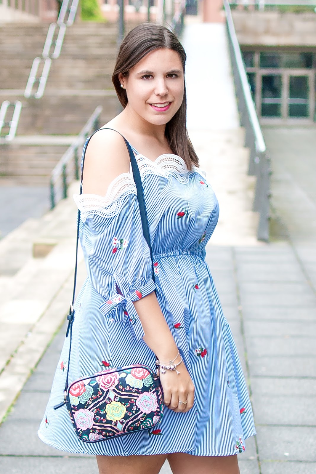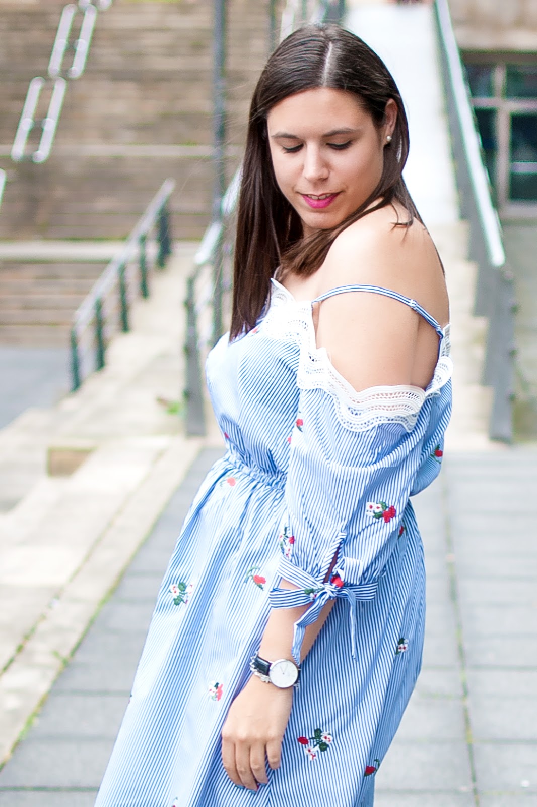 Podríamos decir que el azul es el color del verano, igual que las rayas (y todo lo que tenga que ver con lo marinero) son el estampado de esta calurosa estación. Con ésto y sumado a las flores bordadas y a la tendencia del momento, off the shoulder – hombros al aire, se forma la prenda perfecta: este precioso vestido. Es de Rosegal y no me puede gustar más desde que lo vi por primera vez en la web. ¡En persona es aún más bonito! Es súper cómodo y fresquito, creo que será mi gran aliado en estas vacaciones. Además, lo más guay de todo es que haciéndole un pequeño y sencillo apaño se puede convertir en una blusa con un aire aniñado que adoro. Me chiflan las prendas con vuelo y de esta forma es absolutamente genial. Y tú, ¿con qué te quedas? ¿Vestido o blusa? Espero que os guste y feliz semana ❤