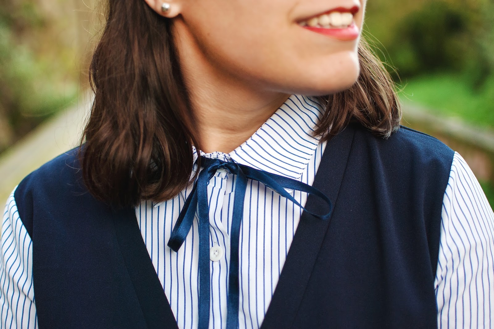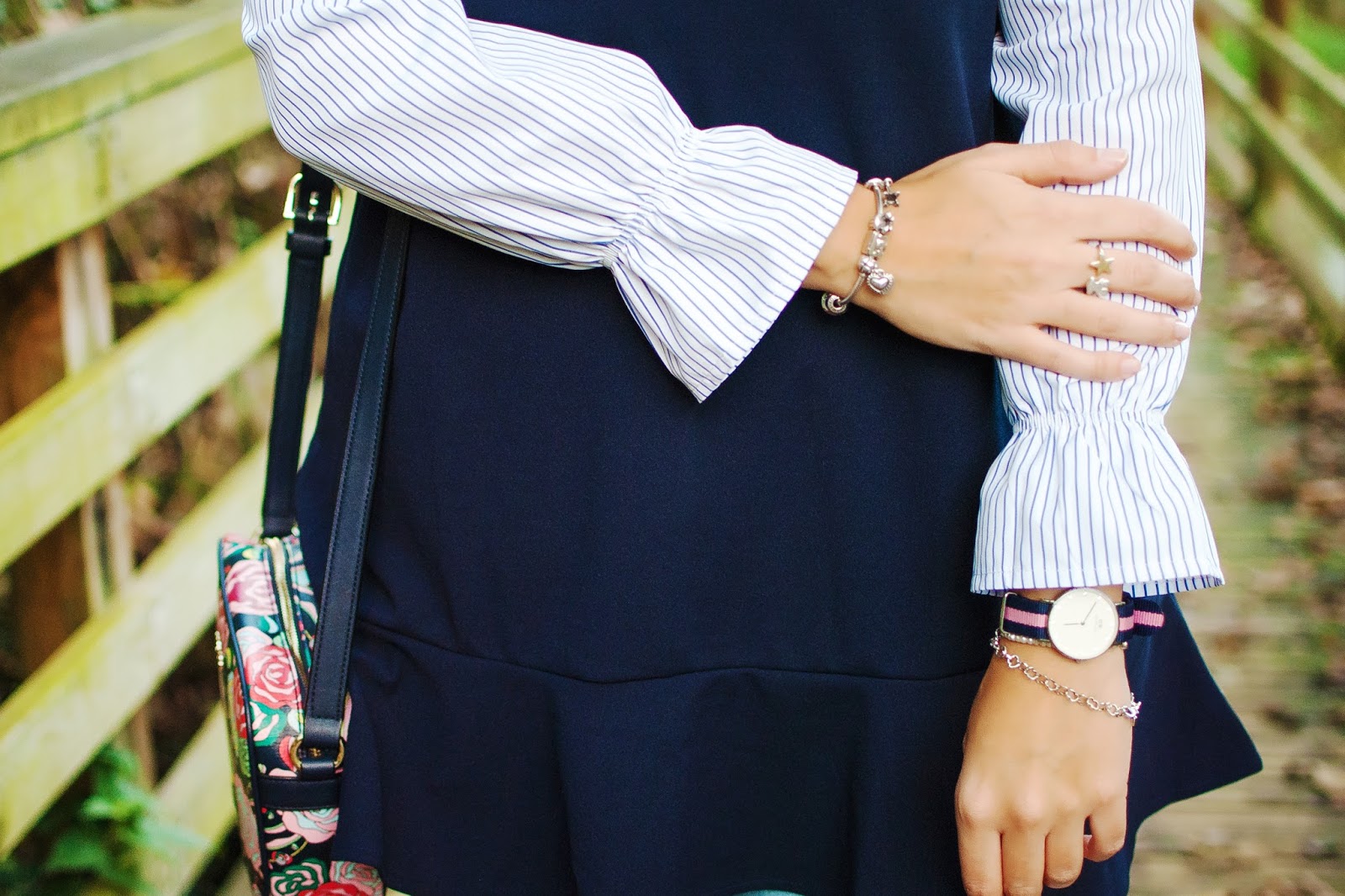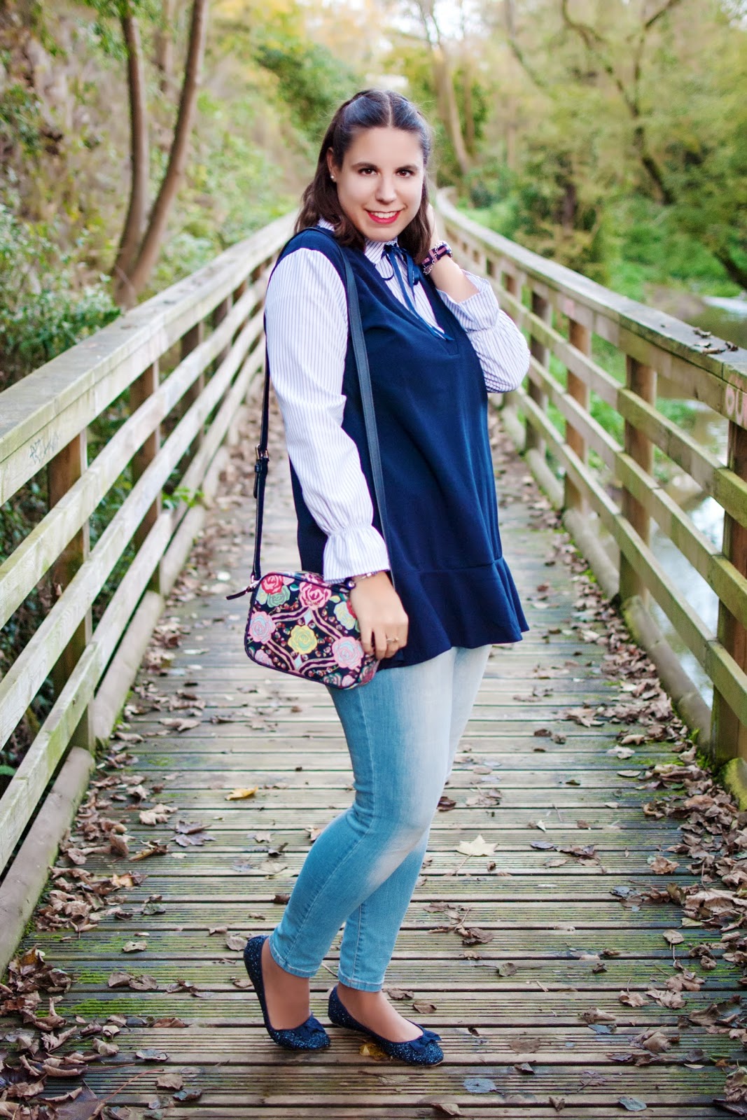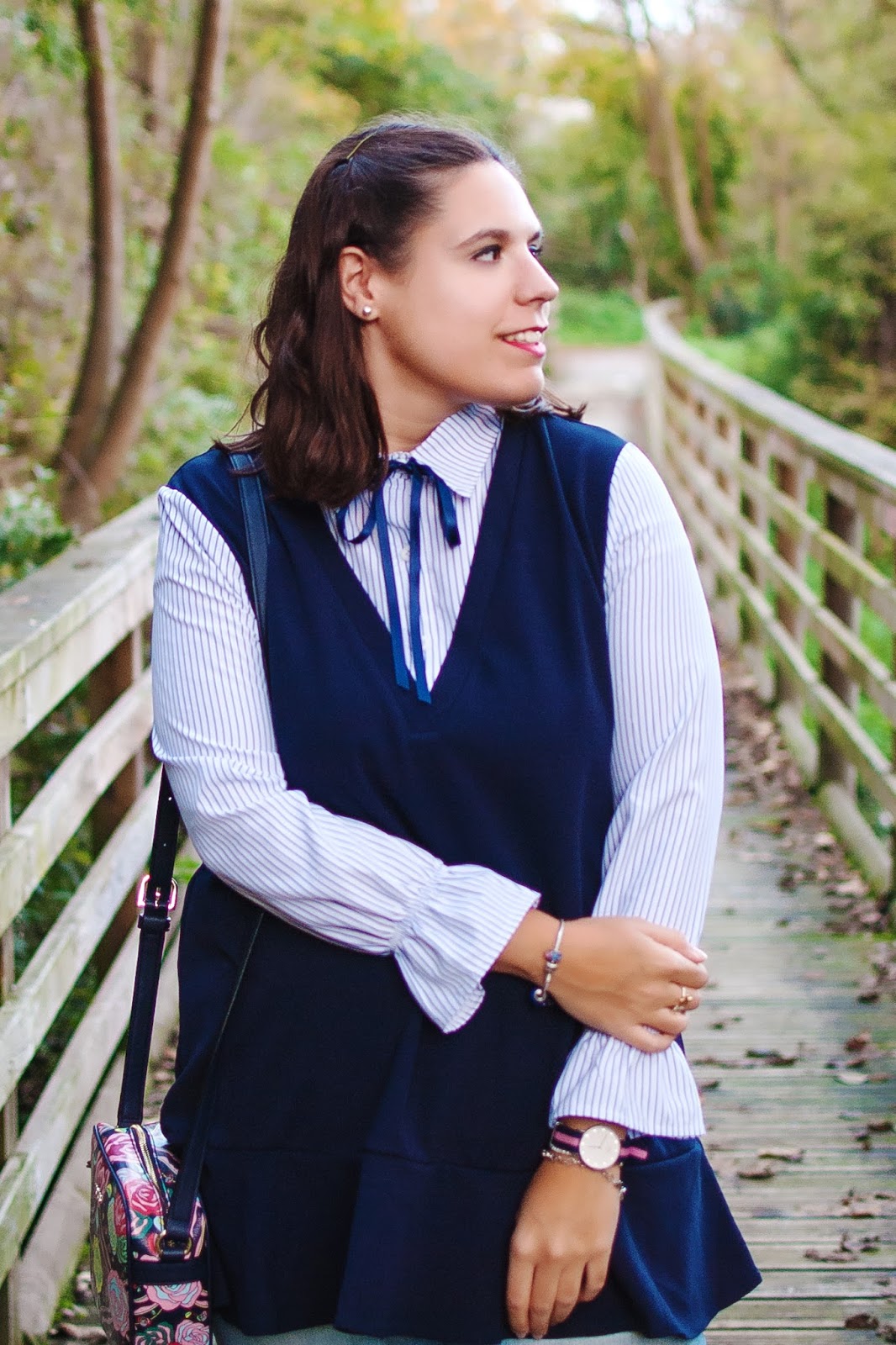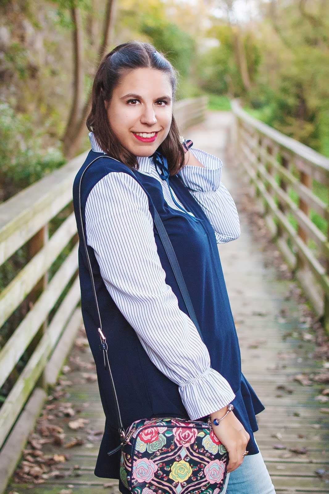 Pasear por la senda de un bosque al atardecer es una de las cosas que más me gusta hacer en todas las estaciones, aunque mi favorita es el otoño porque la naturaleza tiene una mágica gama de tonalidades y siempre me quedo embobada mirando el paisaje y fotografiándolo. Para ello, volví a elegir el azul, uno de mis colores de esta temporada. Creé el look en torno a mi nueva blusa (vestido para la gente bajita :3) de Rosegal, con lacito al cuello y un aire british que adoro. La acompañé con jeans claritos, abrigo en el mismo tono y mi inseparable bolso floral. Espero que os guste y feliz semana ❤