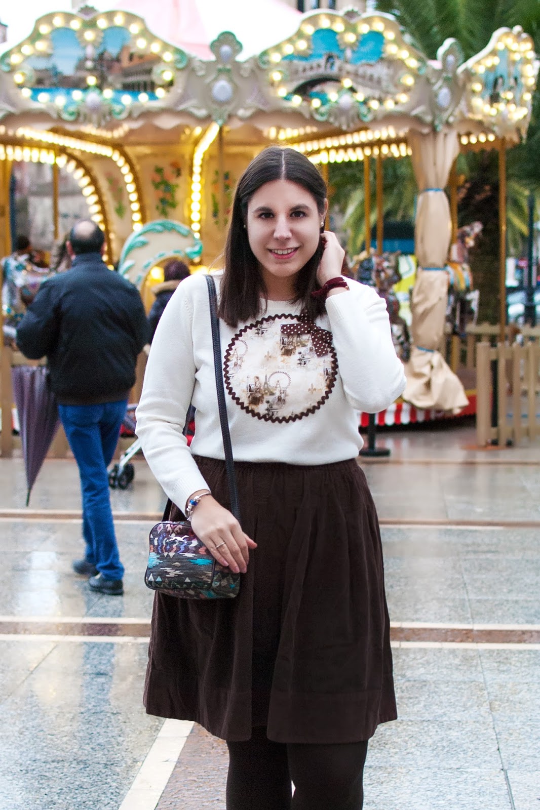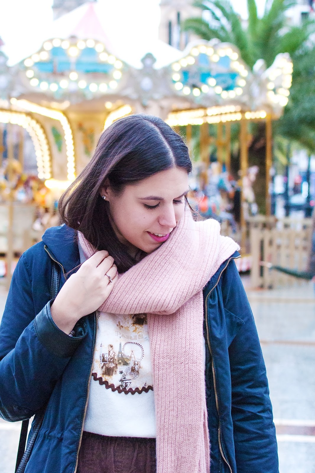Las fotos fueron improvisadas totalmente porque no me esperaba que pusieran de nuevo ese carrusel (sólo lo ponen en Navidades). Me pareció que quedaba súper dulce en el fondo, acompañando a mi jersey favorito de París ❤