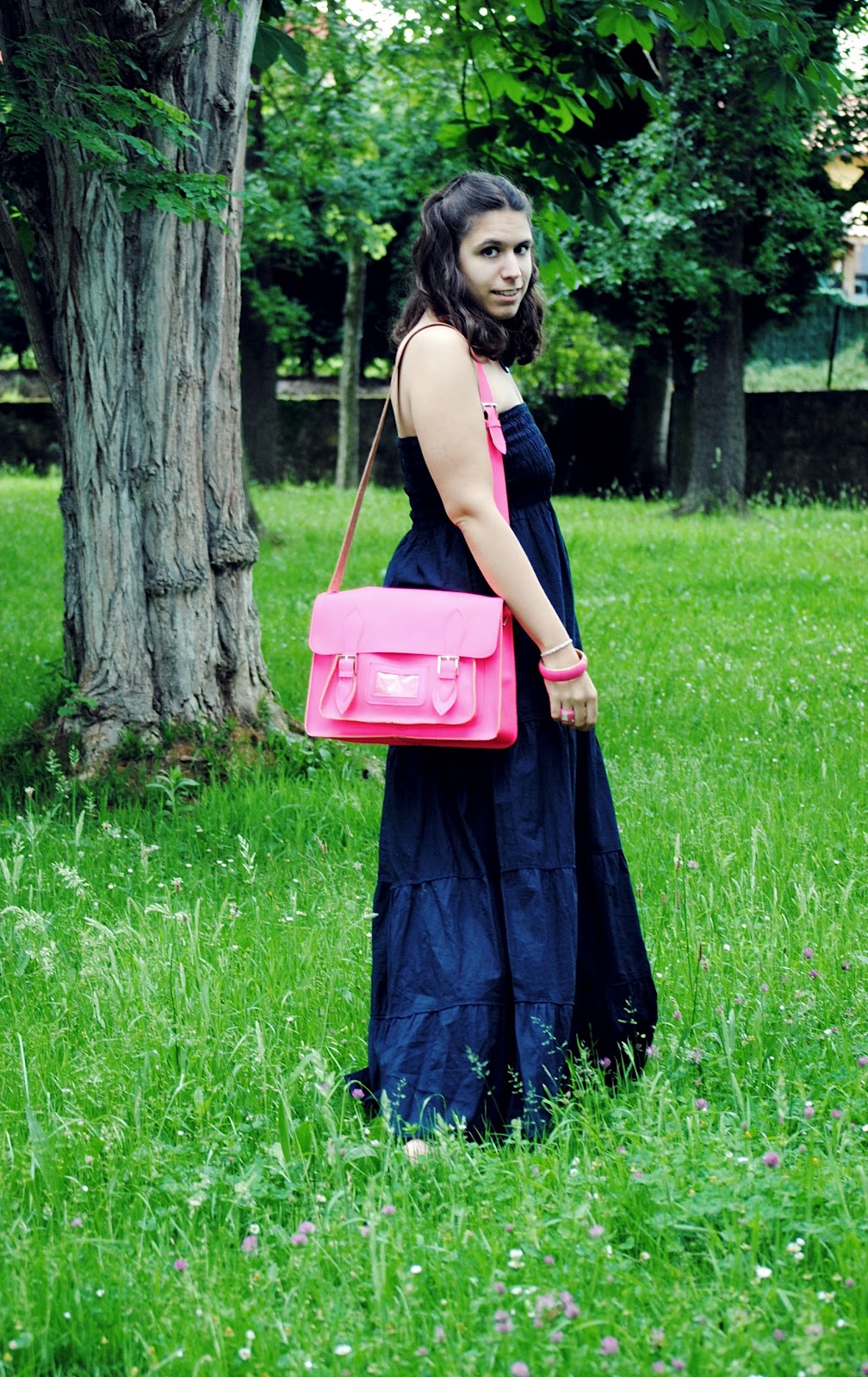 La estrella principal de mi look es mi nuevo satchel bag en rosa flúor. Me lo regalaron mis papis el viernes pasado y casi doy saltos de alegría. Fue muy duro verlo en todos los lados y que no pudiera ser mío por su precio: en los escaparates, en las revistas, en los blogs… Pero por fin lo tengo en mis manos y he de decir que no lo apeo y a pesar de su color, es muy fácil de combinar. Además es súper práctico y cómodo, y en el otoño-invierno podré llevarlo a clase porque caben perfectamente los libros y las libretas. Y seguimos con las fotos del viernes, que como podéis ver, dieron para mucho.