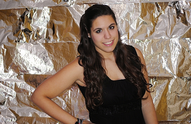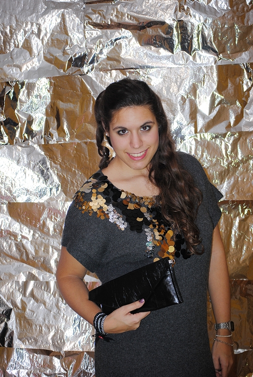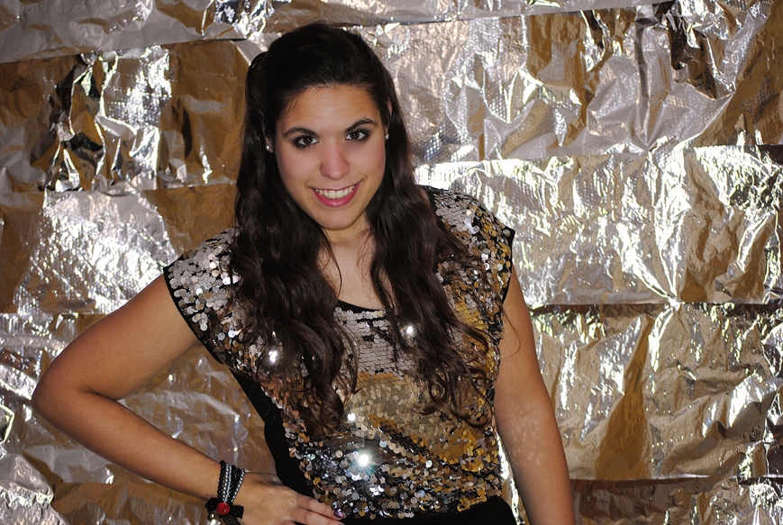 Me encanta el jersey negro con lentejuelas y qué pelazo <3