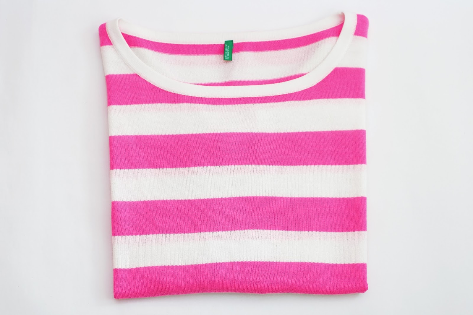 Rescato un outfit del verano que se había quedado en el tintero, aunque se puede utilizar perfectamente en esta época con un abrigo bien calentín. En esta ocasión lo había utilizado como prenda de abrigo, ya que era el típico día gris asturiano, de esos que si vas en manga corta tienes frío, pero que si te pones más de dos capas, te asas de calor. Me encantó nada más verlo en la percha (y más aún debido a que estaba rebajado a más de la mitad), porque une dos grandes tendencias: el rosa flúor y las rayas. Eso sí: ¡se me ve a distancia con él! Espero que os guste 🙂