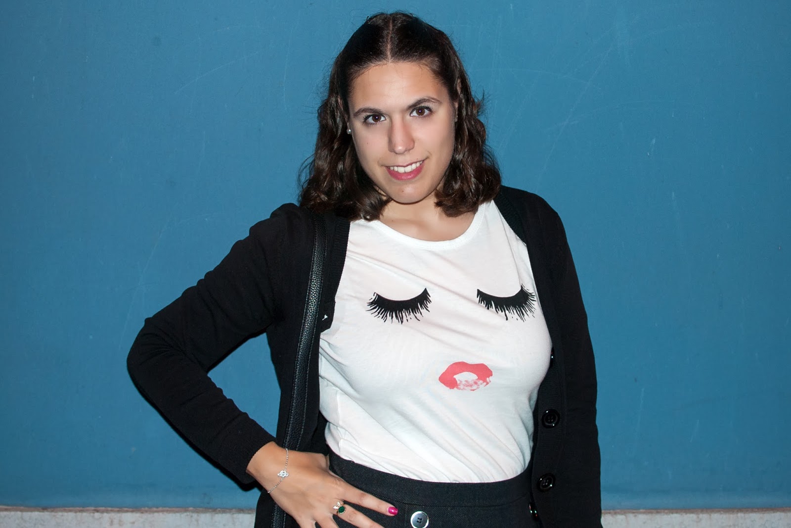 Hola guapa! que chula la camiseta yo quiero una parecida ^^ porque queda genial con falda y con pantalones. Un saludo ^^