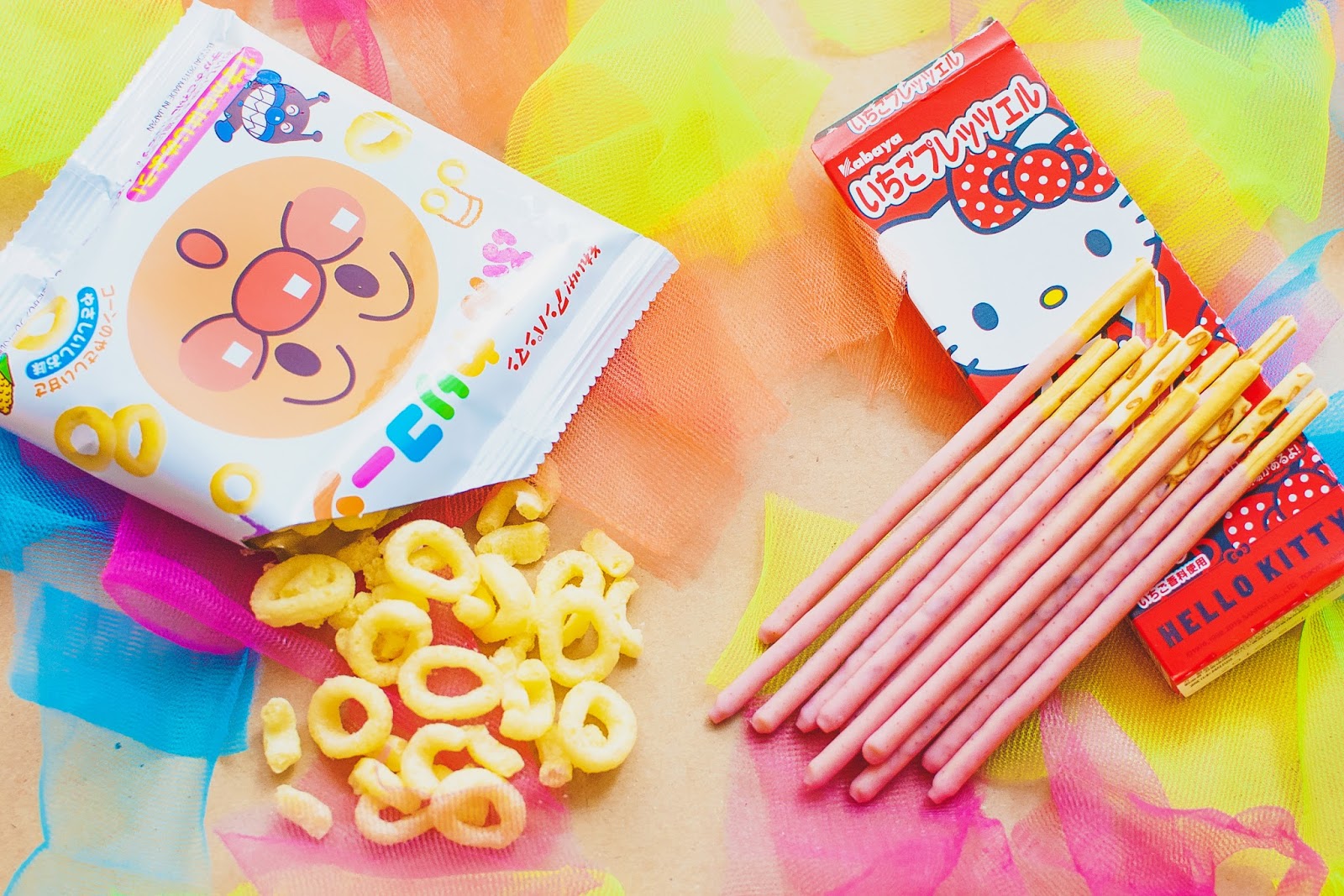 – Tohato Anpanman Corn Rings & Hello Kitty biscuit sticks –