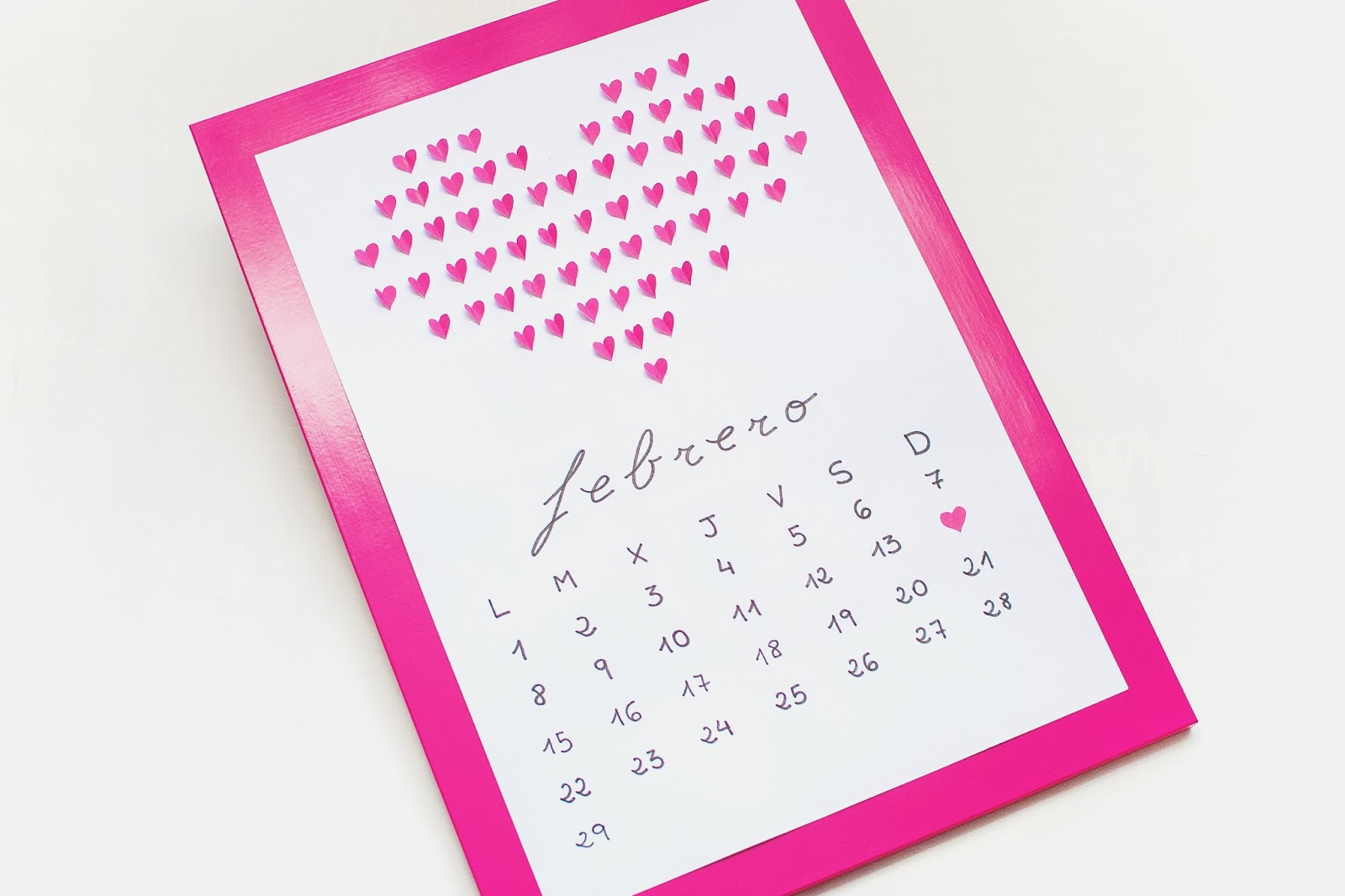 4. Cuadro de corazones febrero: la idea perfecta para endulzar aún más este mes tan amoroso y para que puedas ir tachando los días hasta que llegue el 14 de febrero. En un folio o cartulina blanca, crea un corazón con mini corazoncitos en relieve en la mitad superior. Para ello, dibuja o imprime corazones muy pequeñitos, dóblalos por la mitad y pégalos con celo de doble cara por su doblez. En la parte inferior, escribe con letra bonita el mes de febrero y en el hueco del día 14 pon en su lugar un corazón. El último paso: ¡decora tu rincón favorito con esta monería!