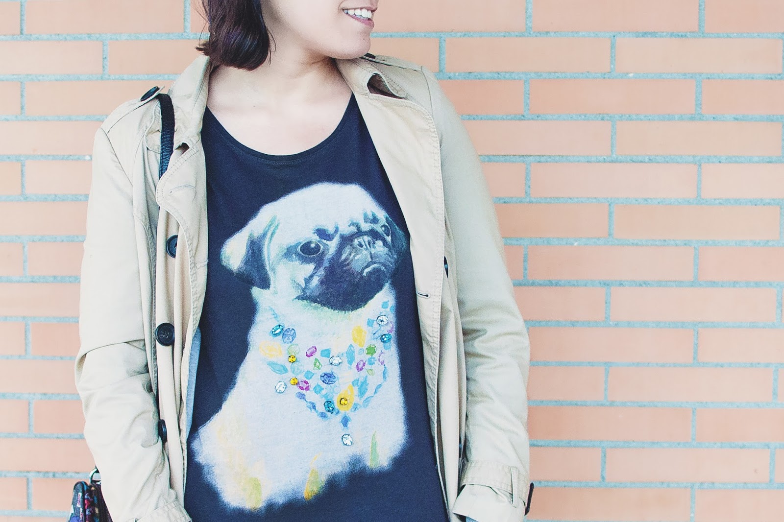 Aunque ya es primavera, el frío y la lluvia siguen estando con nosotros. Por eso, la mayoría de las veces hay que recurrir a prendas de entretiempo. ¿Cuándo podremos salir sin medias o ponernos pantalones cortos y sandalias? ¡Una pregunta sin respuesta! Creo que todavía nos falta bastante para eso… Hoy os enseño un look con piezas rescatadas del fondo (pero fondo, fondo) de mi armario: unas zapatillas que tienen un montón de años y siguen como nuevas, y mi camiseta de perrito a la que tengo mucho cariño. Me encantan los outfits en estos tonos aunque estemos en la época de ponernos color y dar alegría a nuestros looks.