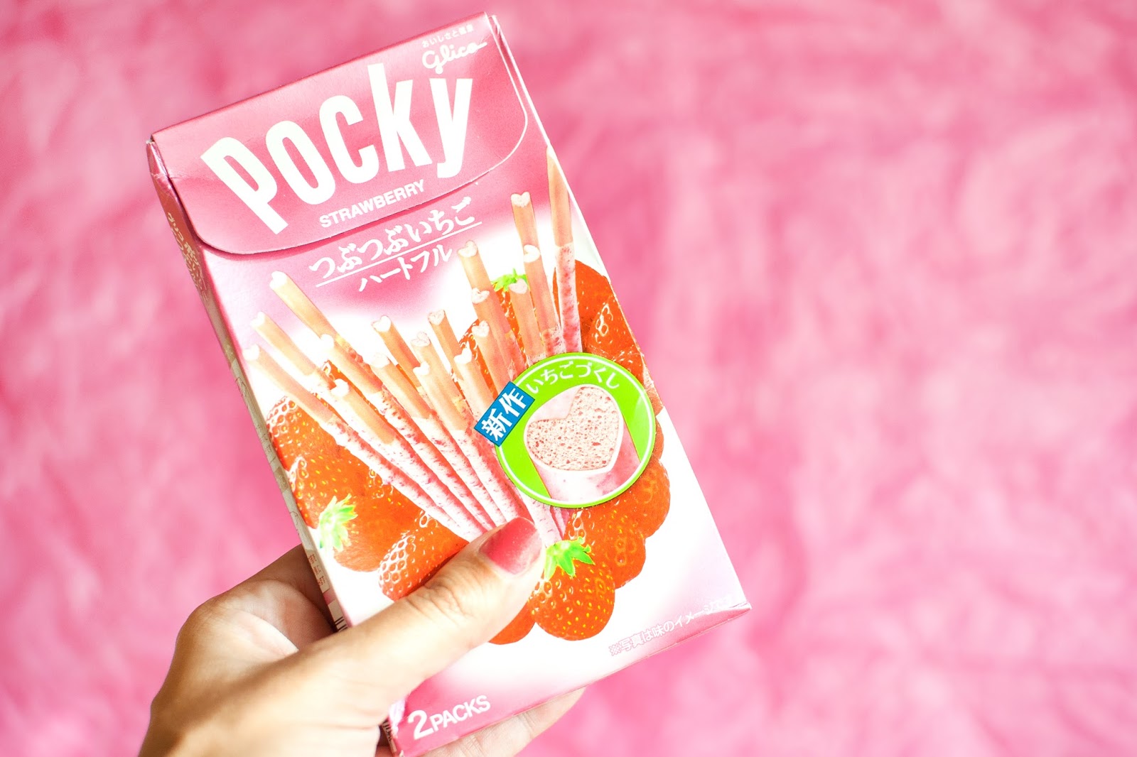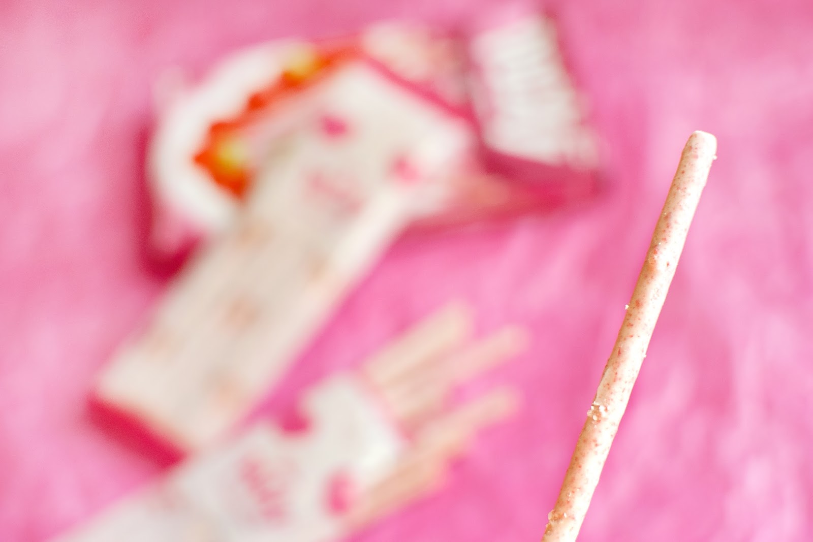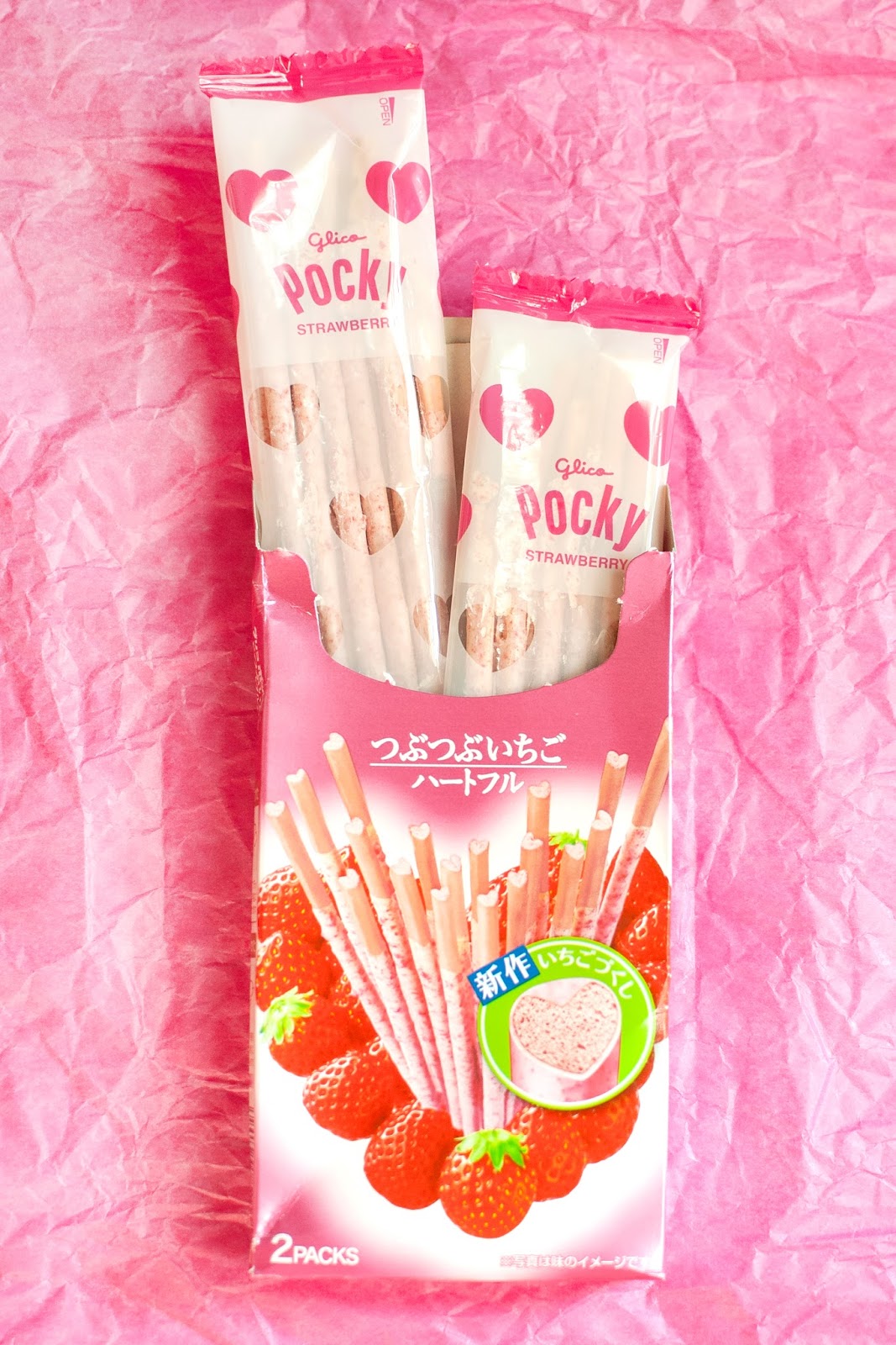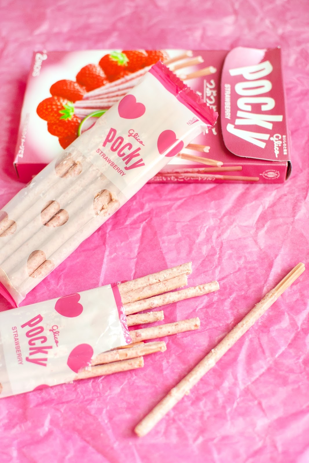 Pocky Biscuit Sticks – Strawberry: palitos estilo mikado recubiertos de una cremosa y riquíma crema con sabor a batido de fresa, para compartir… o no. ¡Están de muerte! Además de una bonita presentación, en sus extremos se puede ver un corazón, ohh… ❤