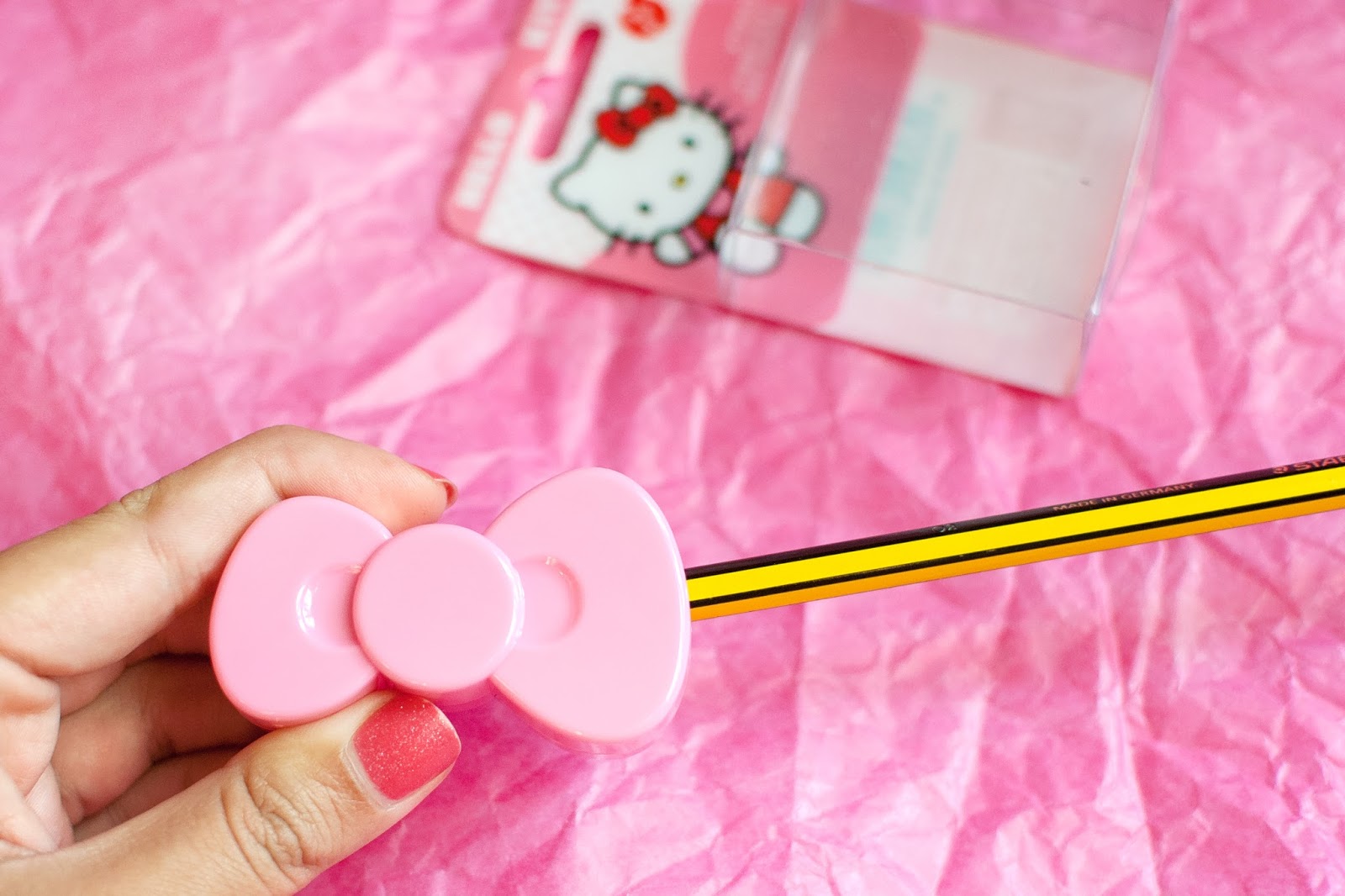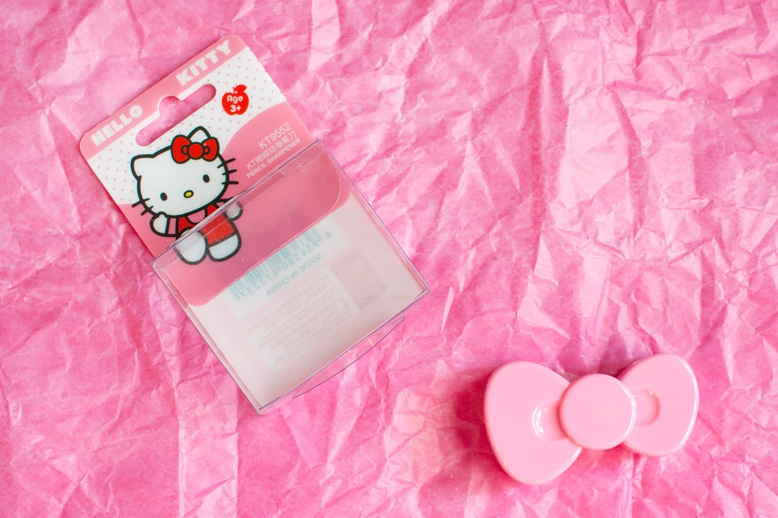 Hello Kitty Ribbon Pencil Sharpener – Pink: tajalápiz/sacapuntas en forma del característico lacito de la gatita más adorable del mundo mundial, la tierna Hello Kitty. ¡No me pudo hacer más ilusión recibirlo, con lo que yo la adoro!