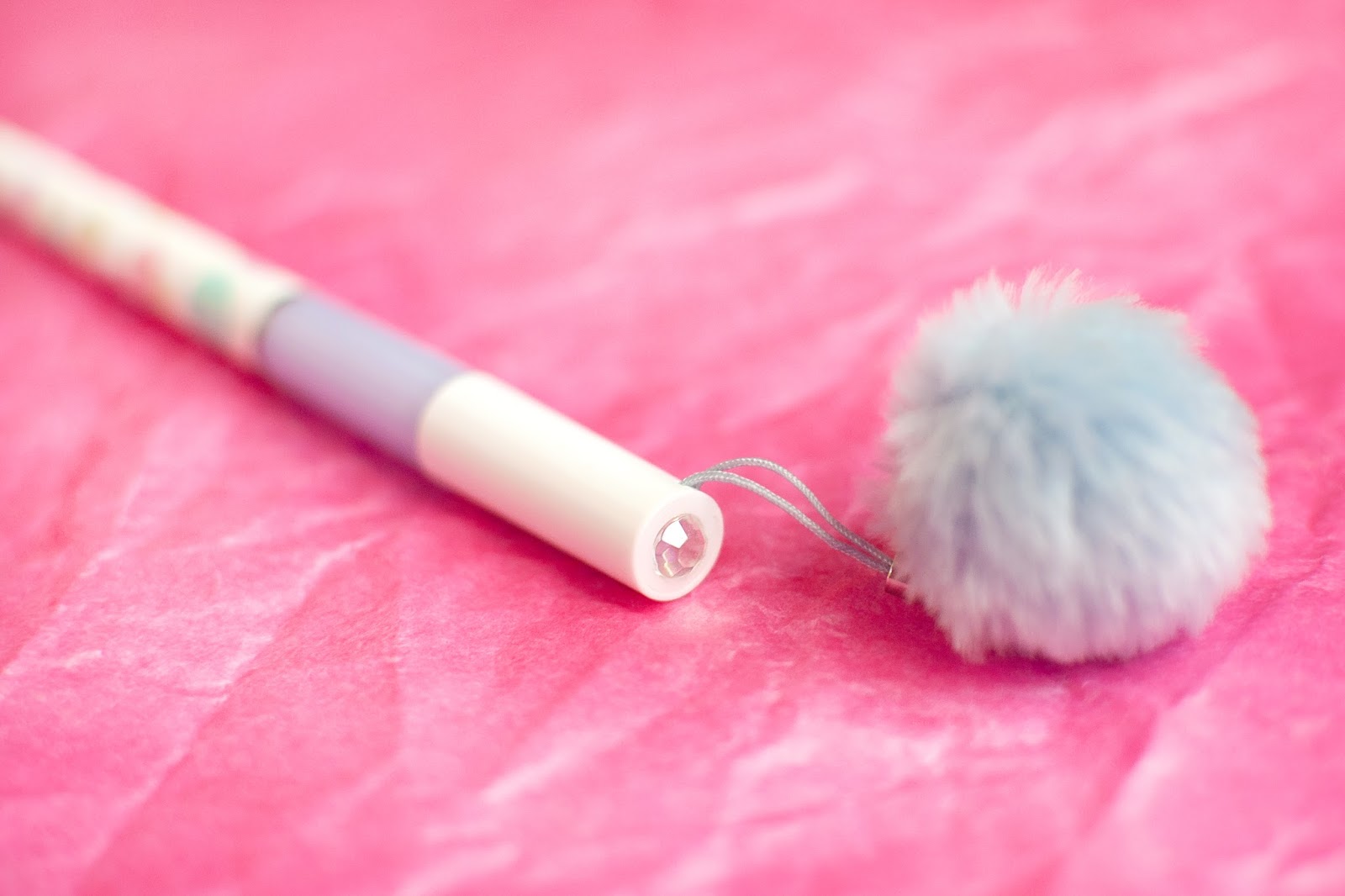 Pastel Pom Pom Ink Pen: bolígrafo de tinta líquida negra con un pompón súper suave y achuchable. ¡Tus notas serán mucho más dulces y tu estuche ganará puntos de adorabilidad! :3