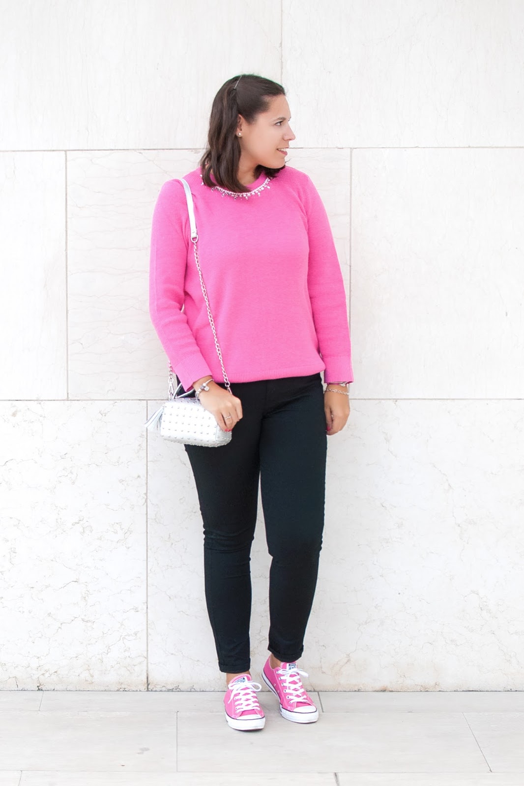 Preciosa! <3 El rosa te queda fenomenal y creo que refleja mucho tu estilo y personalidad que me transmiten mucha energía postiva 🙂 El jersey es precioso y con ese bolsito no me puede gustar más! 🙂