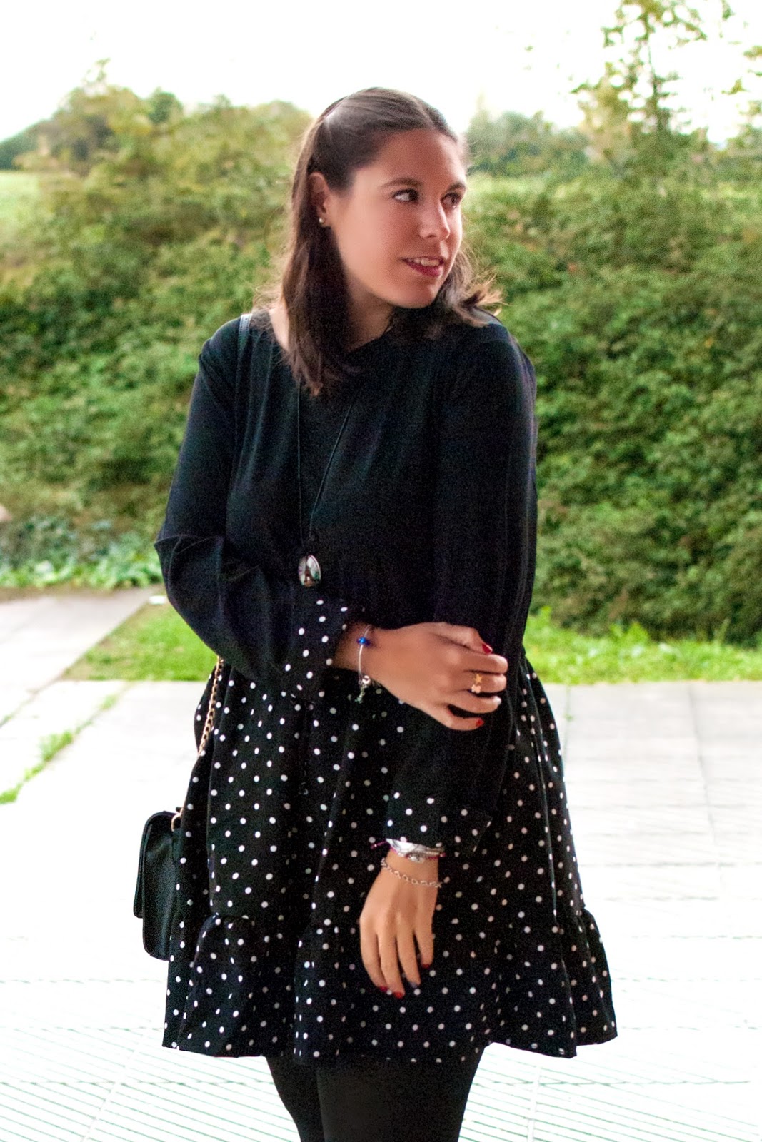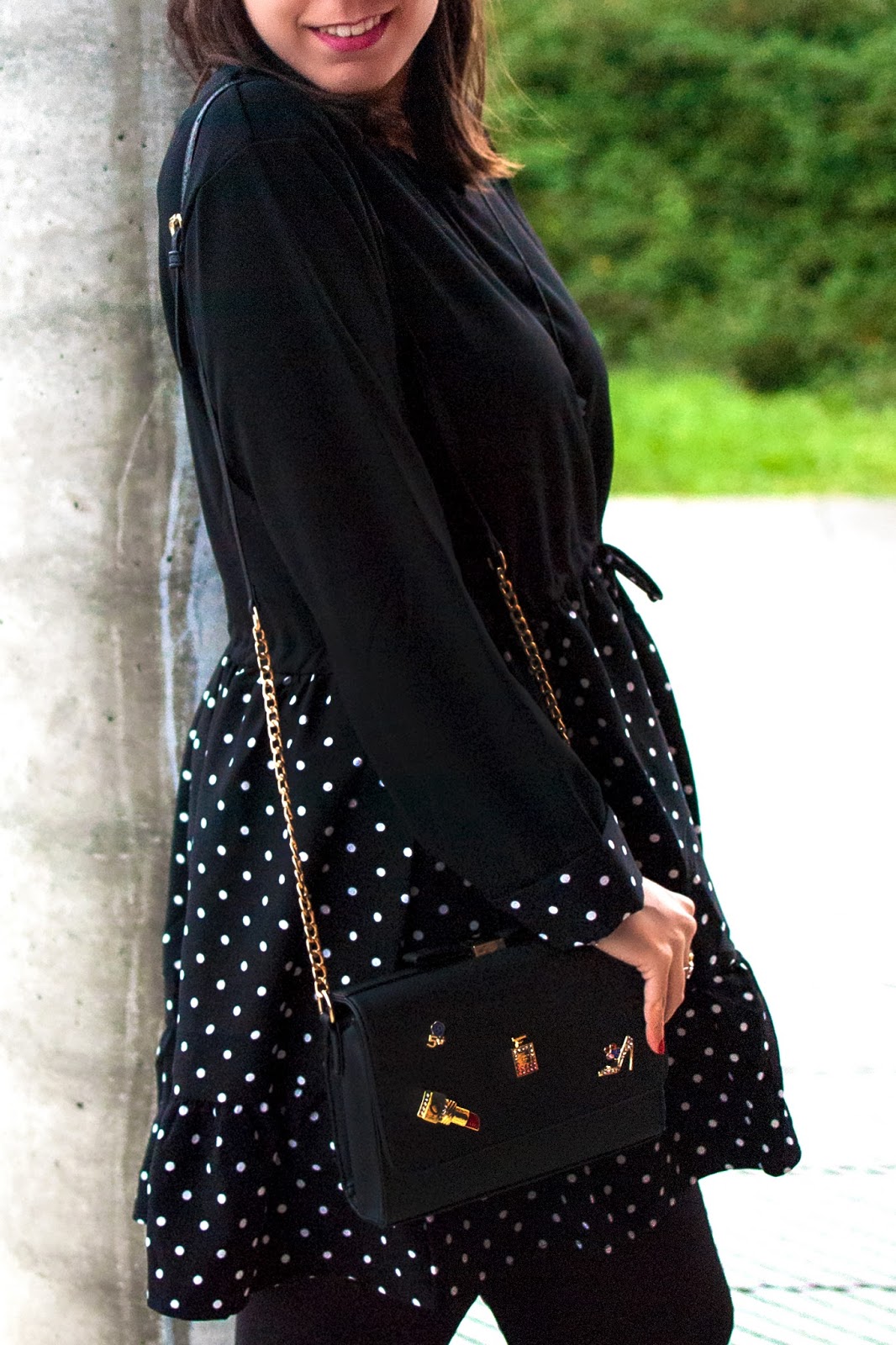 ¡Vivan los lunares! Son uno de los prints más maravillosos que existen, además de que son juguetones y dinámicos 😀 Te quedan muy bien y es totalmente tu estilo… ¿Ves que si se podía incluir negro pero manteniéndote fiel a tu onda? Es un súper OOTD ideal para el otoño y alguna cenita casual-formal 😉