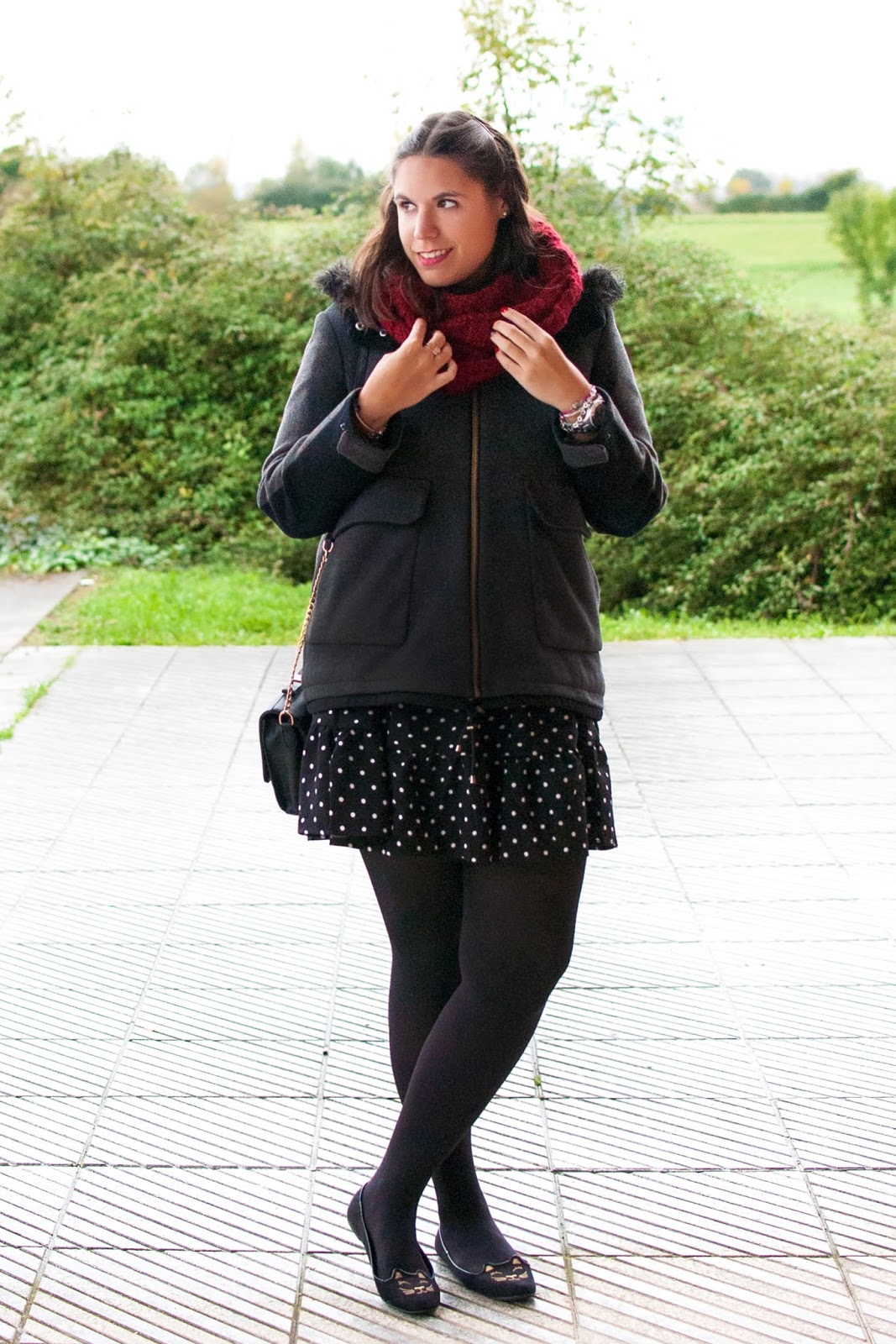muy buen look justamente acabo de ver en otro blog un look también con puntitos y decirte lo mismo que me encanta el toque que aportan al look jejej