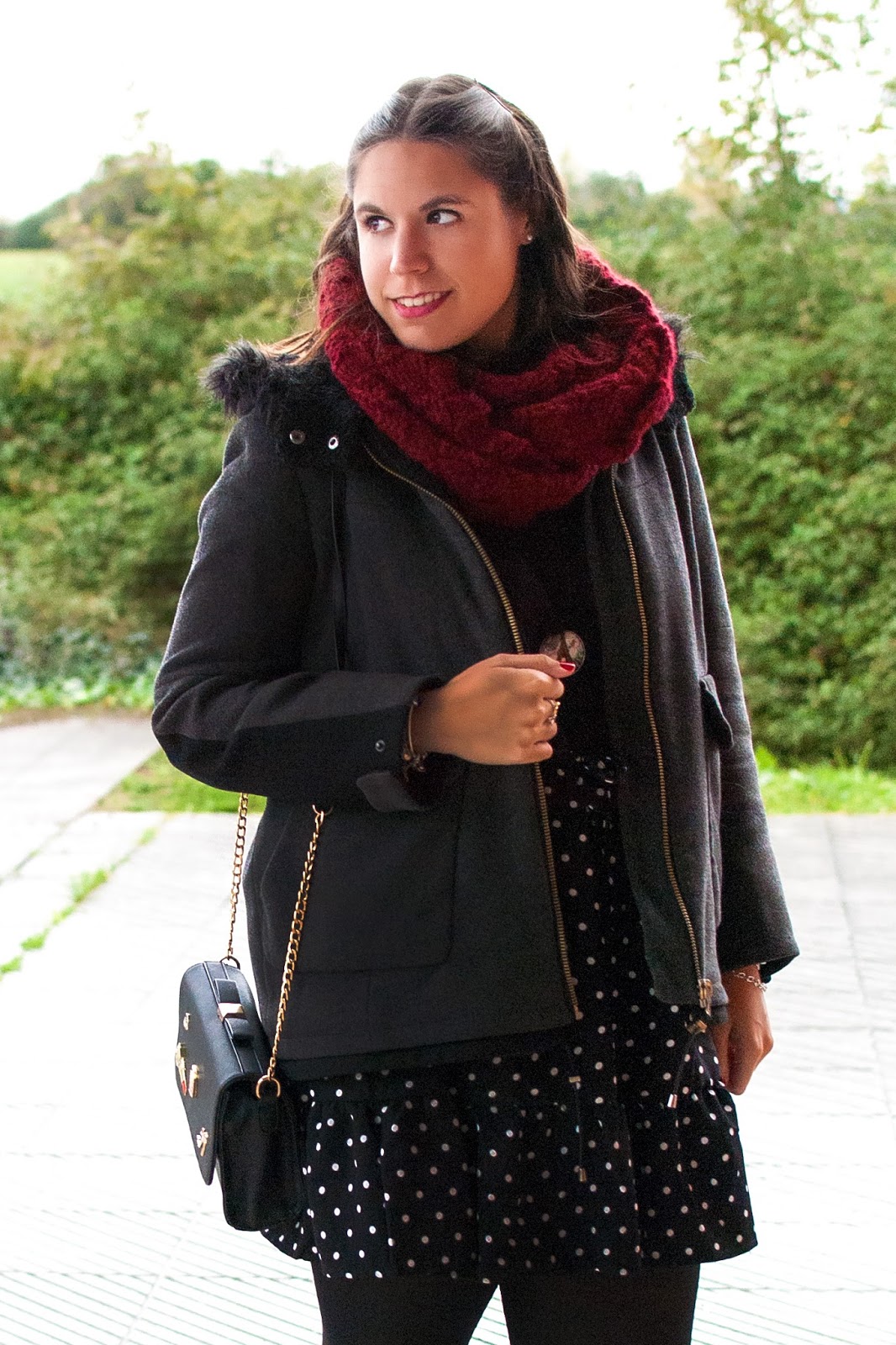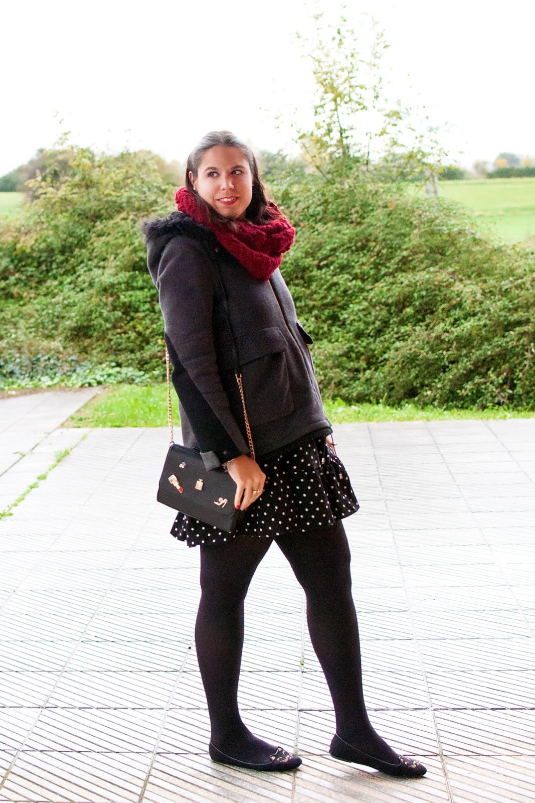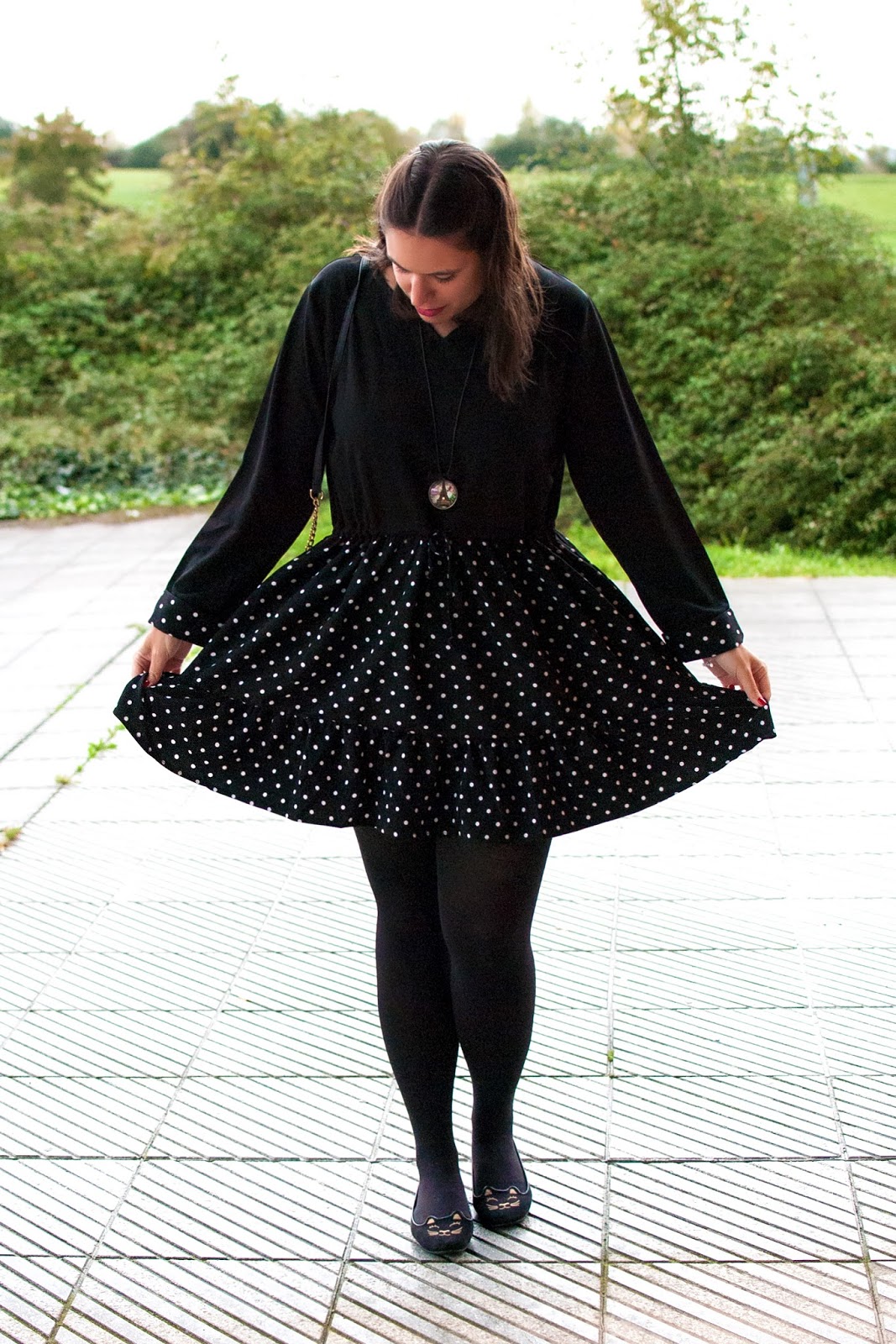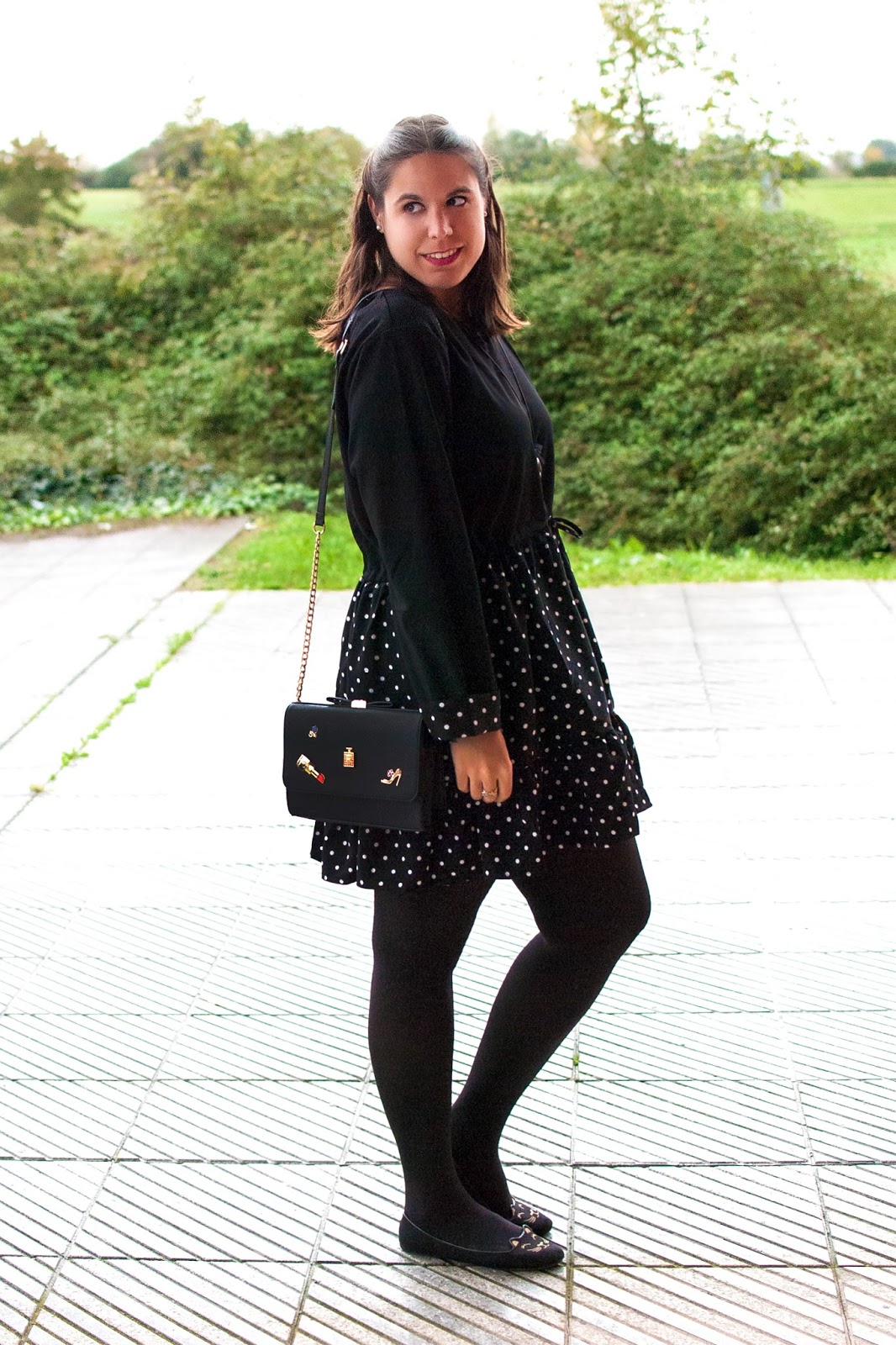 Siempre me han gustado mucho los lunares, da igual su tamaño o su color. Me parece un estampado súper bonito, con un toque que me recuerda a la infancia pero que, dependiendo de la prenda y de los complementos, puede llegar a ser muy elegante. Como este precioso vestido de Sammydress, del que adoro su corte en la cintura y su volantito. Creo que se va a convertir en una pieza clave de mi armario este otoño/invierno porque la verdad es que no me puede gustar más ❤ Y si le añadimos alguna nota de color como, en este caso, la bufanda, nos queda un look final muy, muy chulo. ¿Y qué me decís de los gatetes de mis pies? ¡Son mis bailarinas favoritas y simpre lo serán! Espero que os guste y feliz semana 🙂