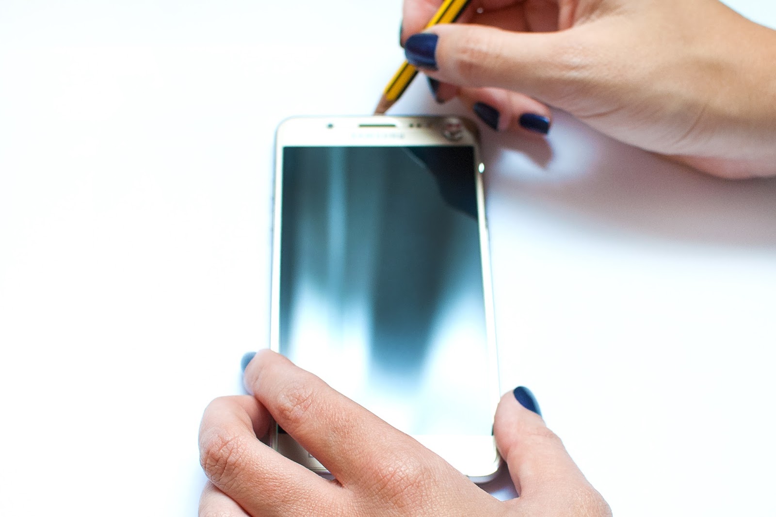 Primero: en un folio en blanco, dibujamos con el lápiz el contorno de nuestro móvil. Esto nos servirá de base como plantilla, para luego realizar de una forma más cómoda todas nuestras carcasas.
