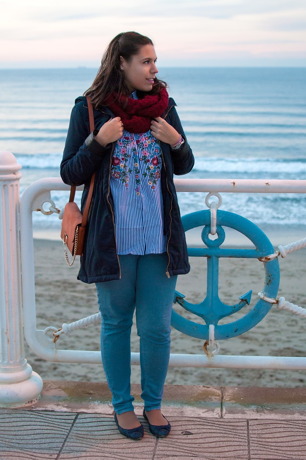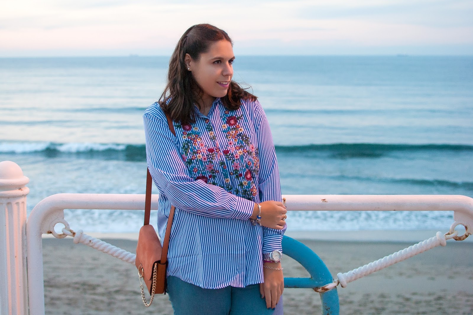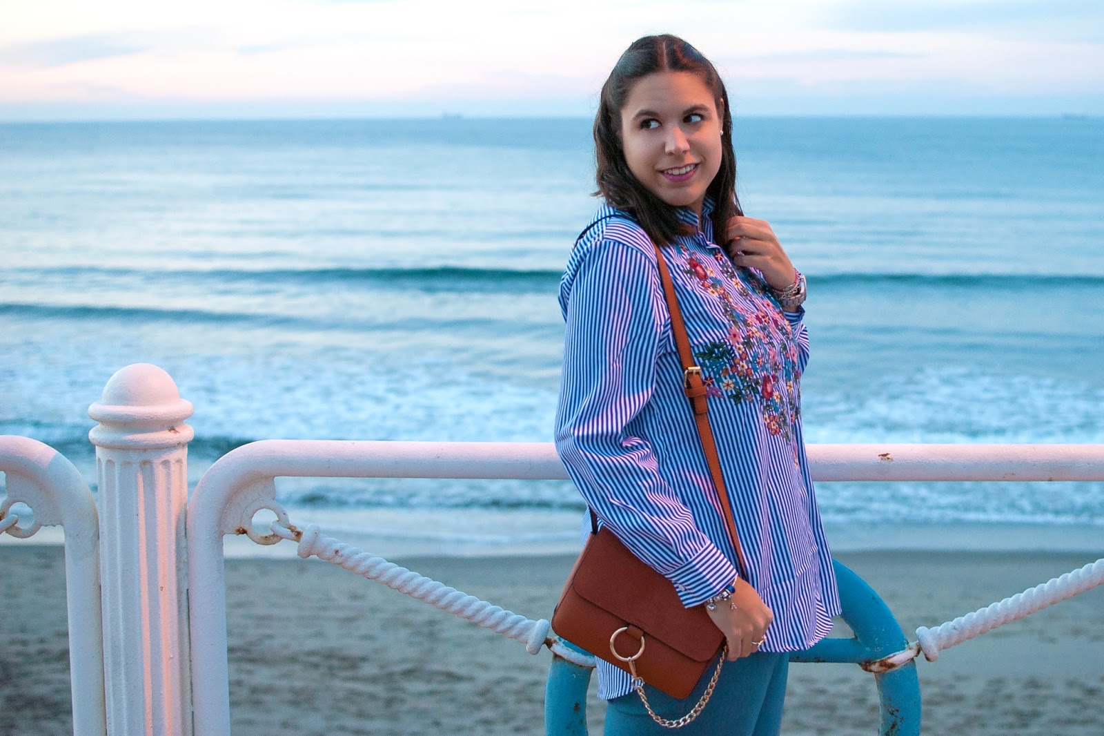 ¡Que vivan las flores y las rayas en otoño, en invierno y en todas las estaciones! Que las flores eran solo para la primavera, eso ya quedó atrás. Igual que las rayas para el verano. Estamos en la era de ponte lo que quieras, como quieras y cuando quieras. ¡Todo vale! (Bueno, todo todo… no, no hay que abusar de este término :3) La estrella de este look es, sin ninguna duda, mi nueva camisa de Zaful, que va a alegrar cualquier día del año con sus preciosos bordados. ¡Si es que no puede ser más bonita, romántica y delicada! Cada día soy más amante de los outfits en azul, creo que es un color que nos ofrece un sinfín de posibilidades con su amplísima paleta de tonalidades. ¿Y vosotros qué opináis de este color?