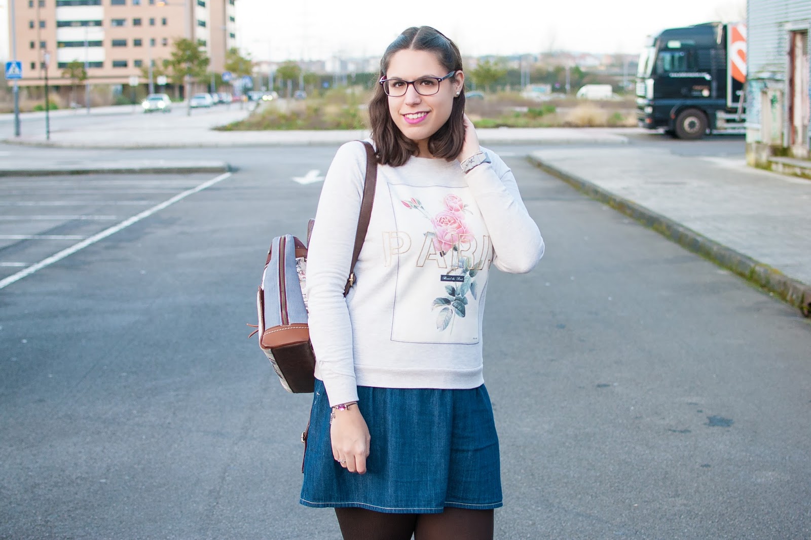 Hola guapa, estas adorable con este look, me encanta la sudadera y queda preciosa con la falda denim y la mochila es muy cuqui también, besos!!