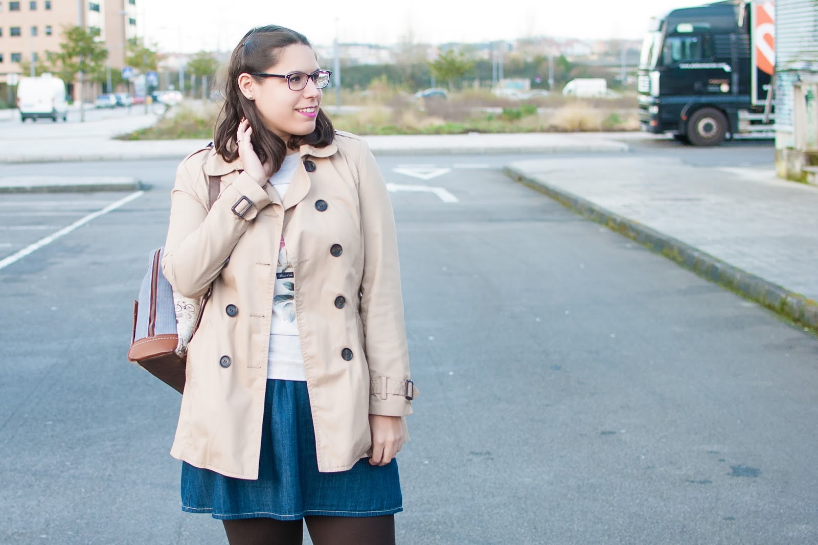 Aiii me gusta mucho el outfit, sobretodo la gabardina con la falda ^^