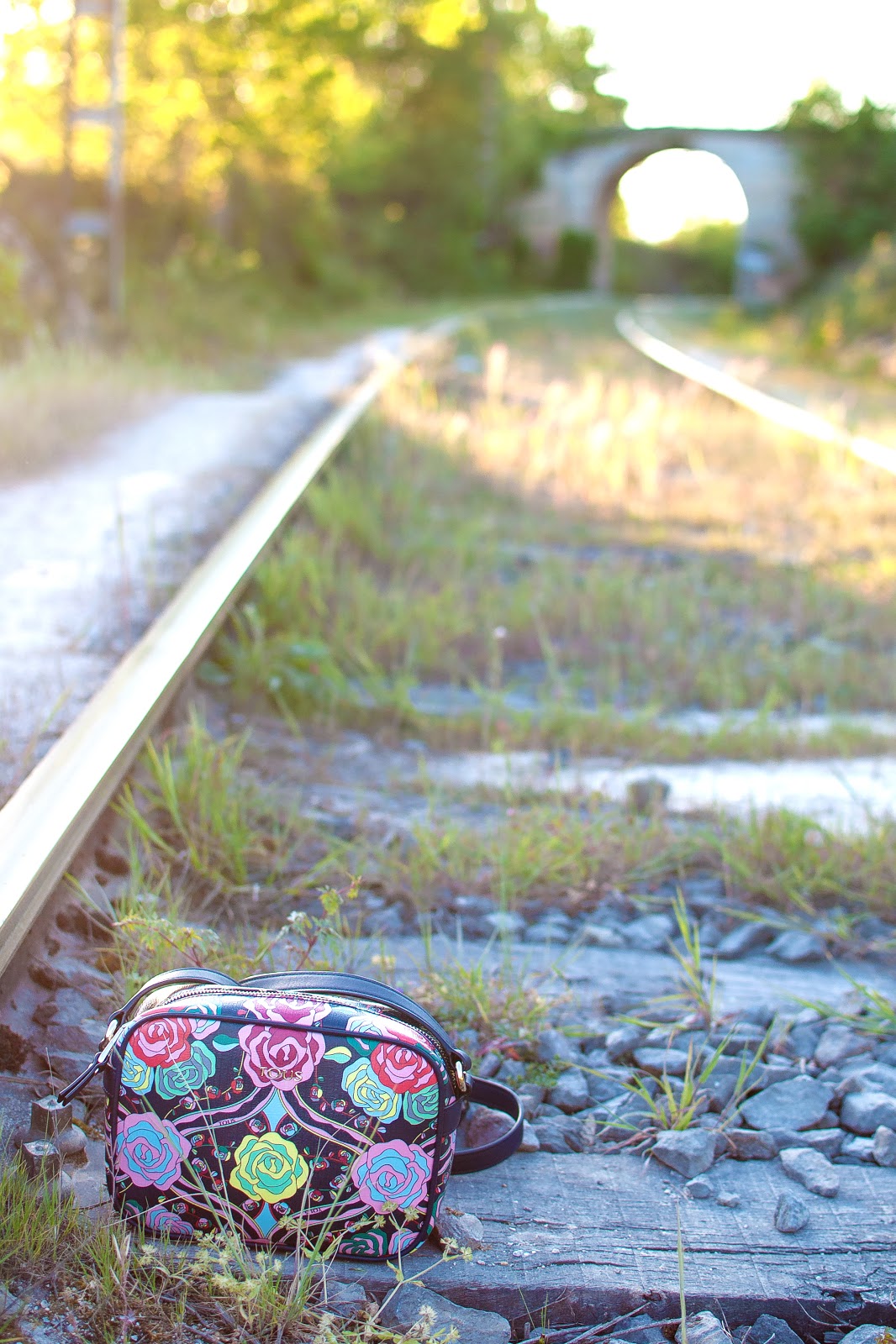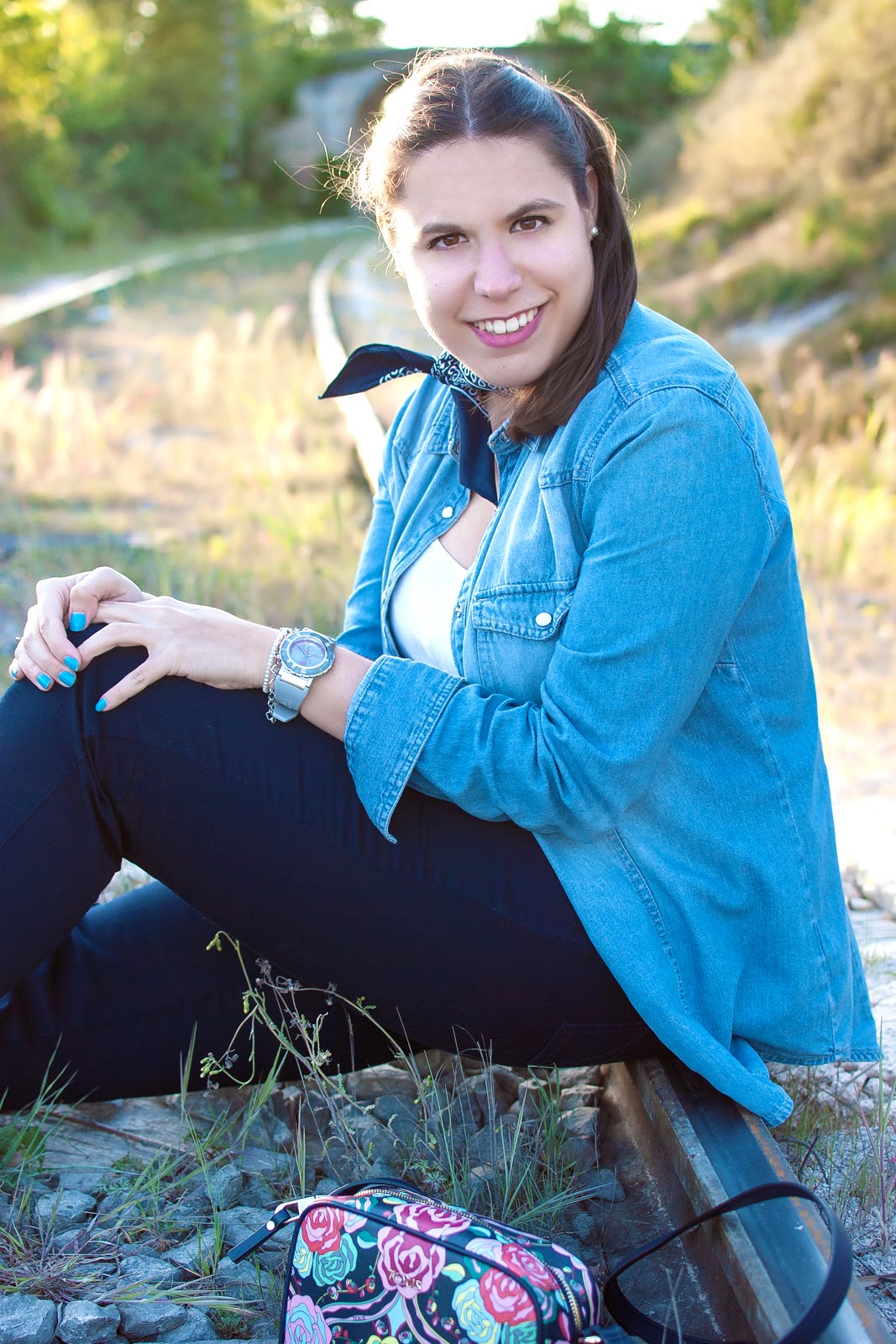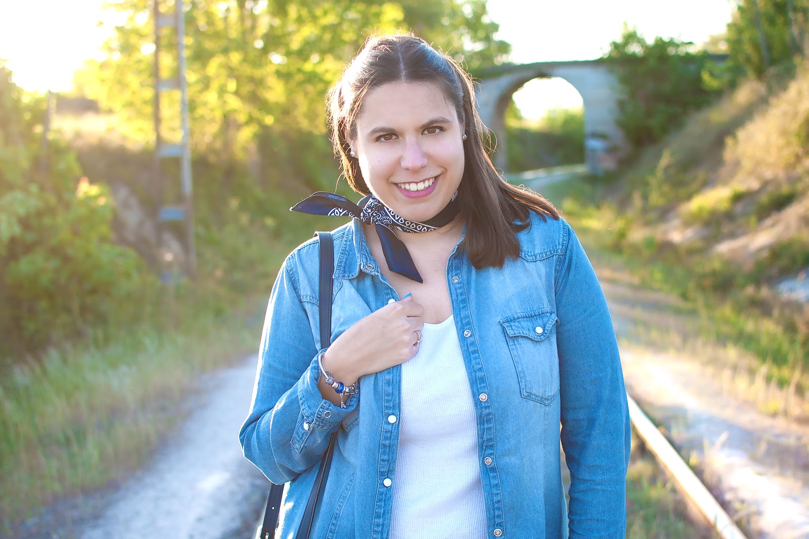 Los atardeceres en primavera tienen un toque mágico, es genial salir a fotografiar a estas horas. ¡Me encantan sus colores y sus juegos de luces y sombras! El buen tiempo nos acompañó hasta hoy, pero tengo la esperanza que nos volverá a visitar muy pronto y podamos seguir disfrutándolo un montón. De momento, yo lo recuerdo con este look en denim y esta bonita sesión en unas viejas vías del tren. ¡Adoro como han quedado y todo gracias a mi querido fotógrafo! Este tipo de outfits son a los que más recurro por semana, son súper cómodos y perfectos para aguantar la rutina del día a día. Sólo hay que añadir complementos y accesorios que marquen la diferencia y muestren nuestra personalidad, como mi bolso floral de Tous y una bandana al cuello. Espero que os guste y muy feliz semana ❤
