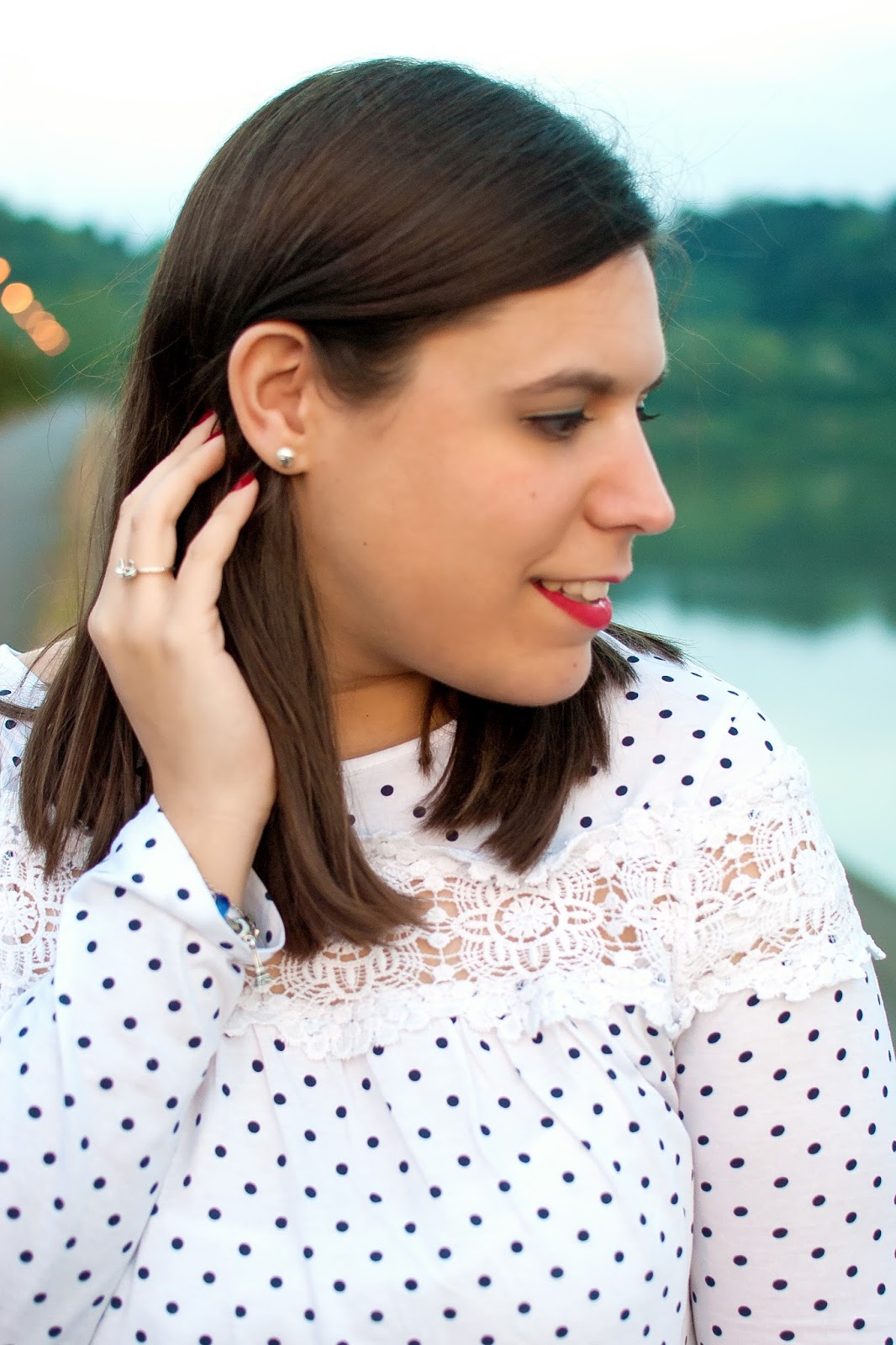 La blusa es preciosa, estás muy guapa! A mi me encantan los estampados de lunares, siempre quedan bien ^^ Y las fotos son muy bonitas!