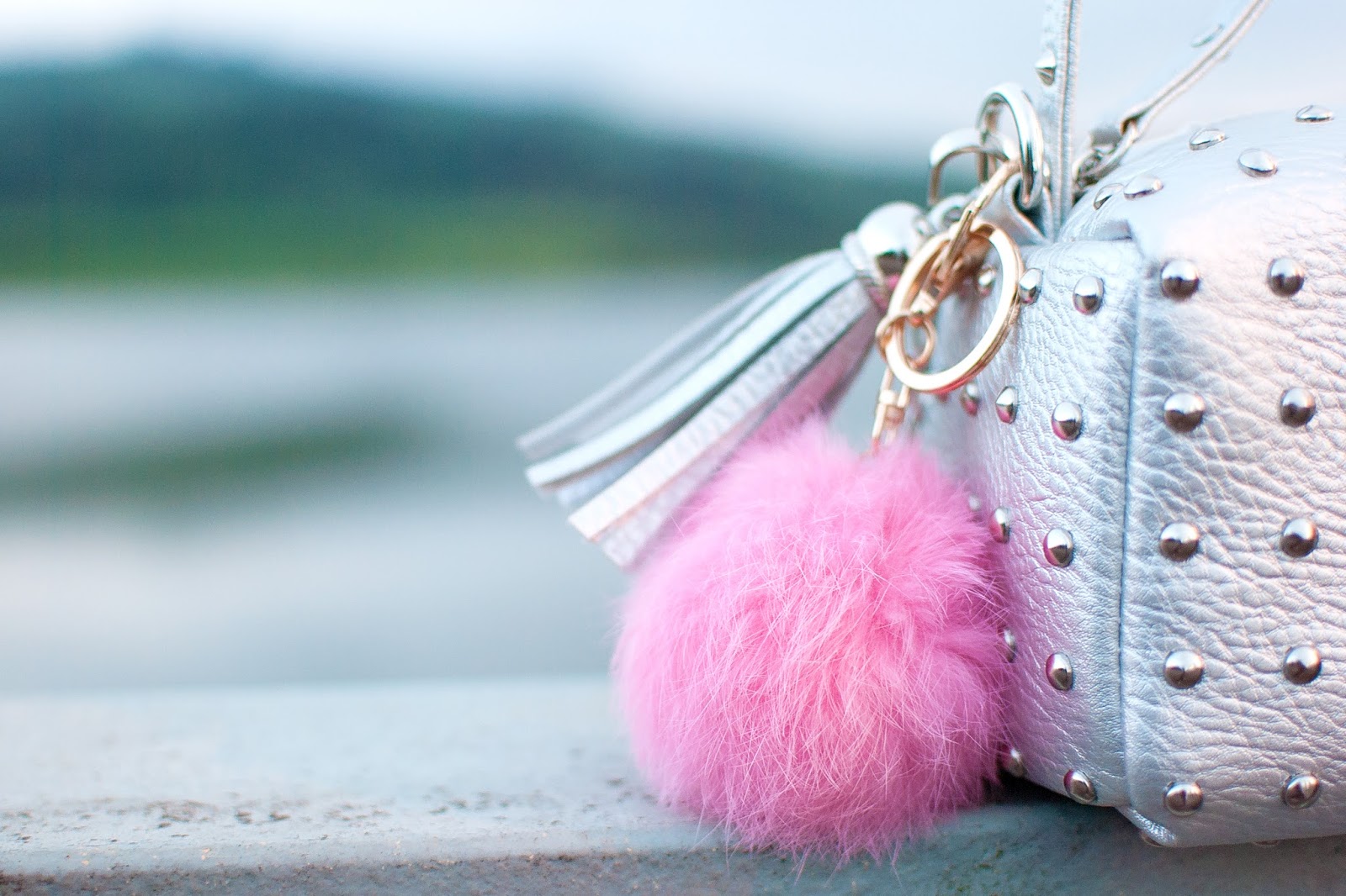 Adore your casual style with nice detailing such as polkadots and trimmed lace. Anyway, your metallic shoulder bag with pink furry bag chain is super cute <3