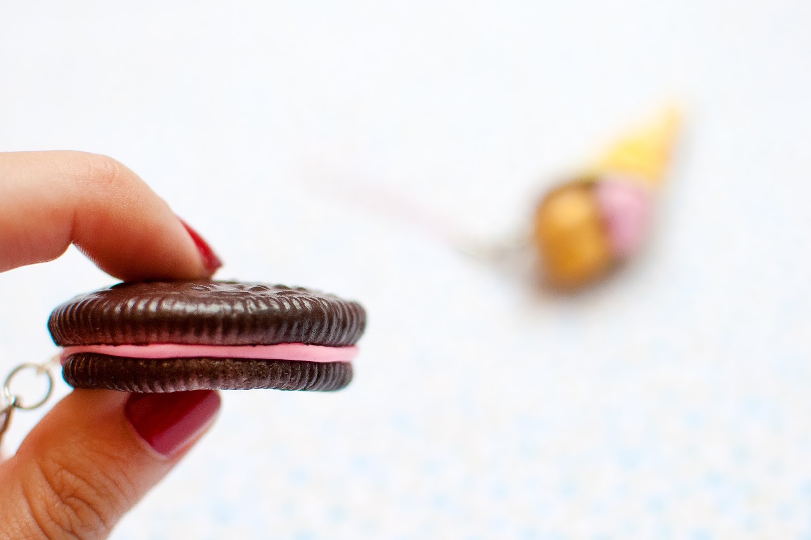 Llaveros con forma de galleta oreo y crepe relleno. ¡Tienen una pinta deliciosa! 😛