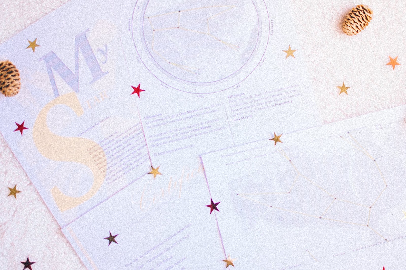 ¡Ha nacido una estrella y se llama Mi maldita dulzura! Sí, como lees, y es todo gracias a Etoilez-Moi, una empresa francesa que se dedica a bautizar estrellas con el nombre y la fecha que nosotros deseemos, además de elegir también la constelación para que así pueda estar lo más personalizada posible. Lo realizan a través del International Celestial Repertory, registro oficial de identificación de estrellas, por lo que te garantizan que esa estrella es única (sólo tuya). Creo que es un regalo súper especial y original (en su web tienen un montón de packs para cumpleaños, bautizos, San Valentín…), perfecto para estas Navidades porque ¿a quién no le gustaría brillar en el universo a través de una estrella? A mí me han enviado el pack ‘Estrella fugaz’ en su versión económica y recibí directamente los documentos al email: el certificado de registro, el mapa celeste, la ficha de la constelación y un precioso poema. ¿Sencillo y cómodo, verdad? ¡Pues anímate y regálasela a tu persona más especial! Espero que os guste y feliz semana ❤