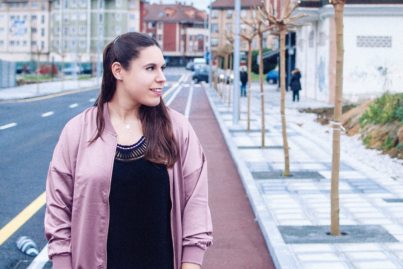 ¿Bonita época, verdad? Minifaldas, cardados, maquillajes estridentes, colores flúor, el estampado de leopardo como rey de los looks… Y, como no, ¡las chaquetas bomber! Yo revivo esta tendencia que tanto juego dio en esa década con esta nueva pequeña joya de mi armario. Es de Hunkemöller, una marca con una sección especializada en mallas deportivas, sujetadores deportivos y, por supuesto, ropa deportiva en general. Esta chaqueta pertenece a su colección Doutzen y me parece preciosa por todos sus detalles: su rosa satinado, el aro en la cremallera y lo perfecta que es para el día a día. ¿Os gusta? Para resaltarla, opté por un total black look que no me puede gustar más. ¡Seguro que no me canso de usarla de cara a la primavera! Espero que os guste y feliz semana ❤