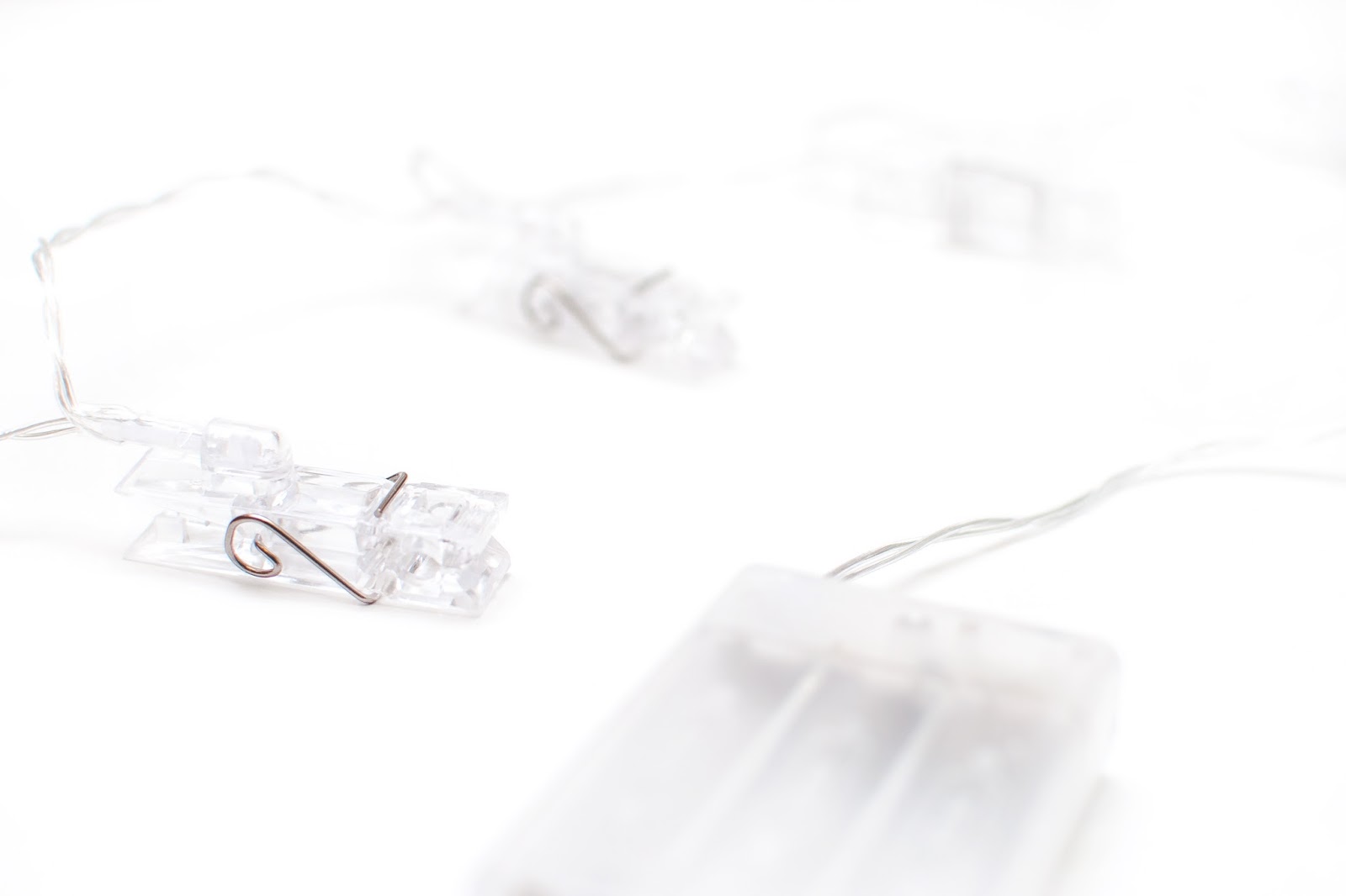 – Lo segundo es esta requete bonita guirnalda de 20 pinzas con luces. ¡La idea perfecta para mostrar a todo el mundo tus fotos favoritas en tu casa! Va a pilas y tiene dos modos: luz continua o luz intermitente. Convierte cualquier rincón súper acogedor sin ninguna duda 🙂