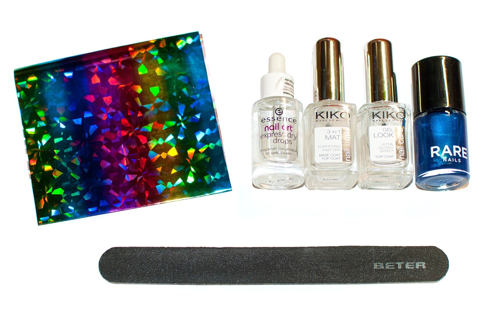 – Holo transfer sticker / papel-pegatina para transferir en manicuras (here/aquí)