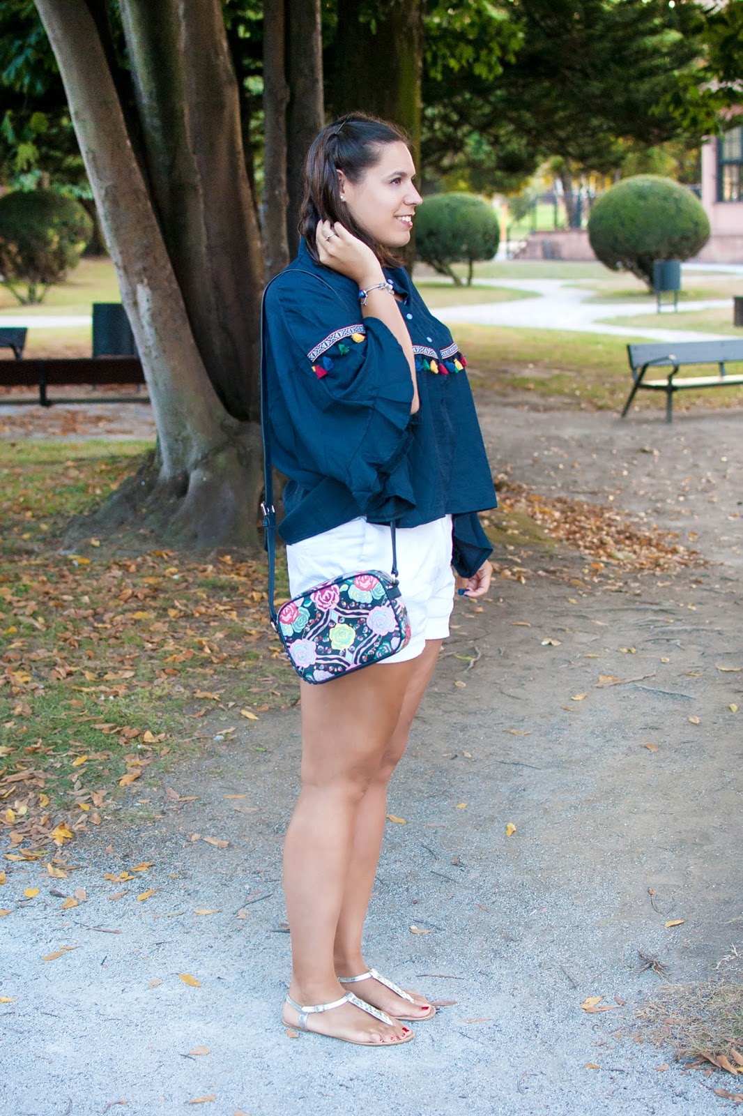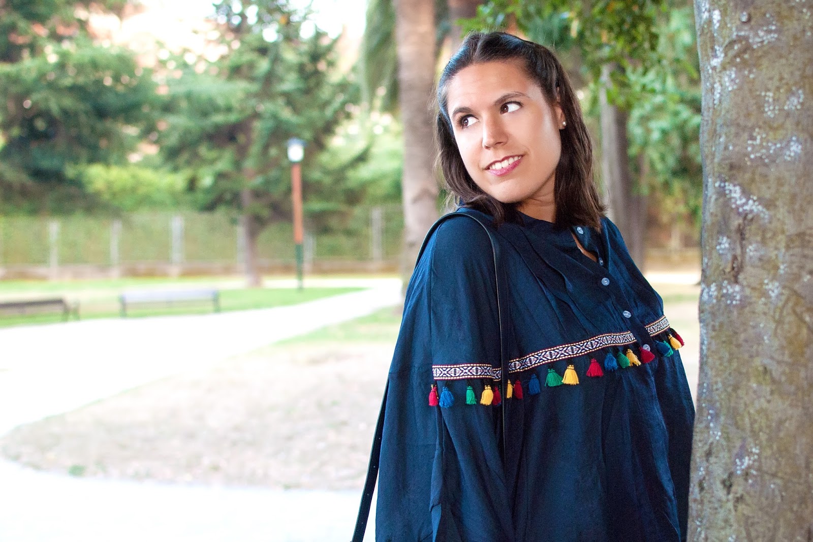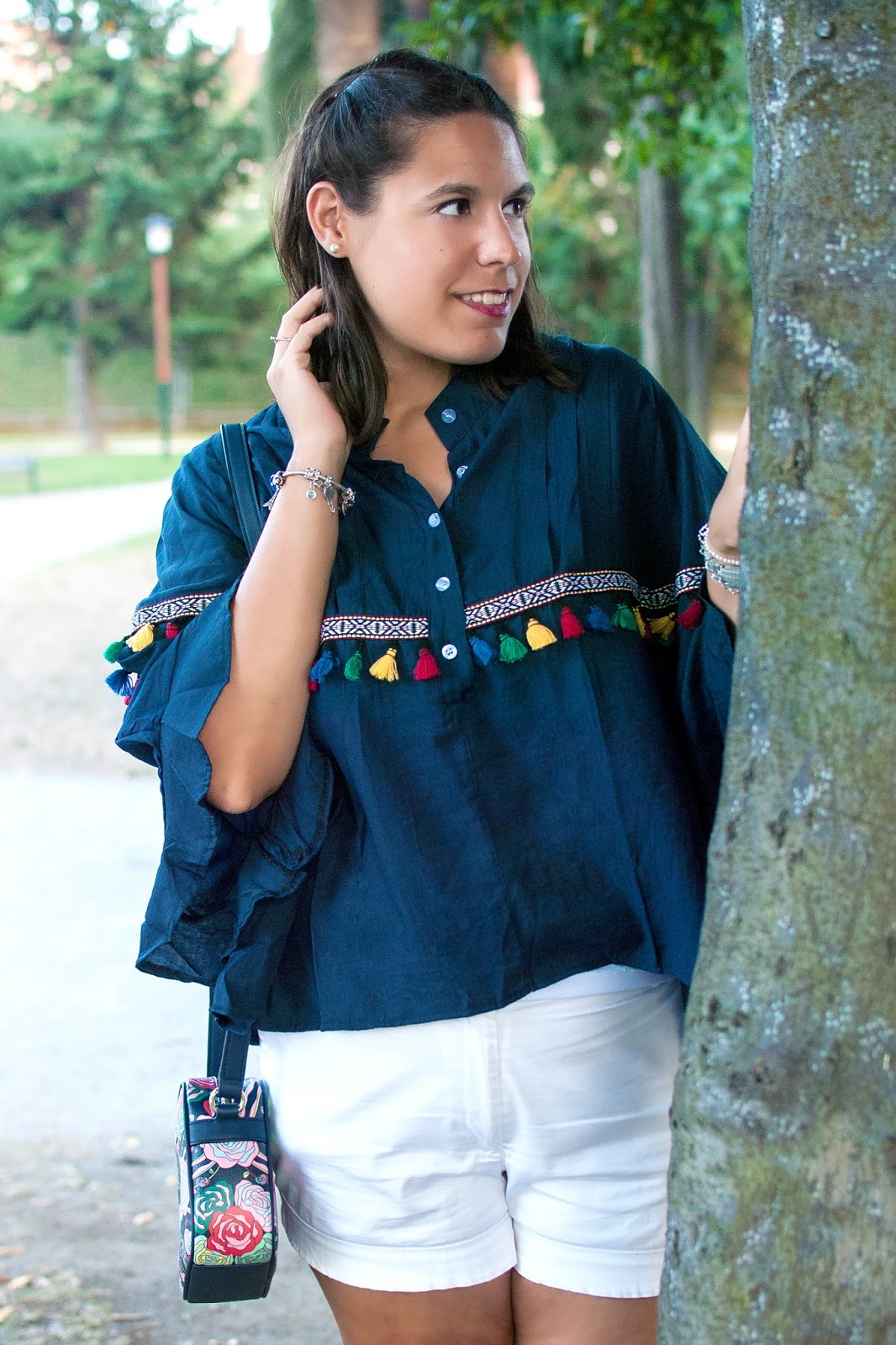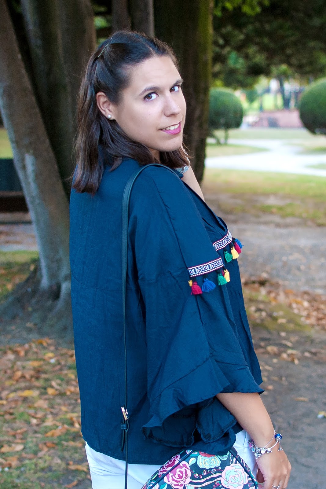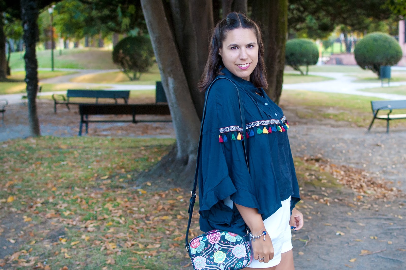Última semana de septiembre y yo, por aquí, todavía no me quiero despedir de los looks veraniegos. Aunque la realidad sea un poco distinta… ¡El otoño se nota y mucho! Los días están bastante frescos, las nubes se acaparan del cielo casi todos los días… ¡Vamos, que el buen tiempo sólo queda en el recuerdo con estas fotografías! La estrella del outfit de hoy es esta bonita blusa boho de Sammydress, con un corte muy original y súper fresquita. El azul, igual que el rosa, me encanta en todas sus tonalidades y ocupa una gran parte en mi armario. Además adoro el detalle de las borlas en todos los colores, aporta un toque muy divertido. Espero que os guste 🙂