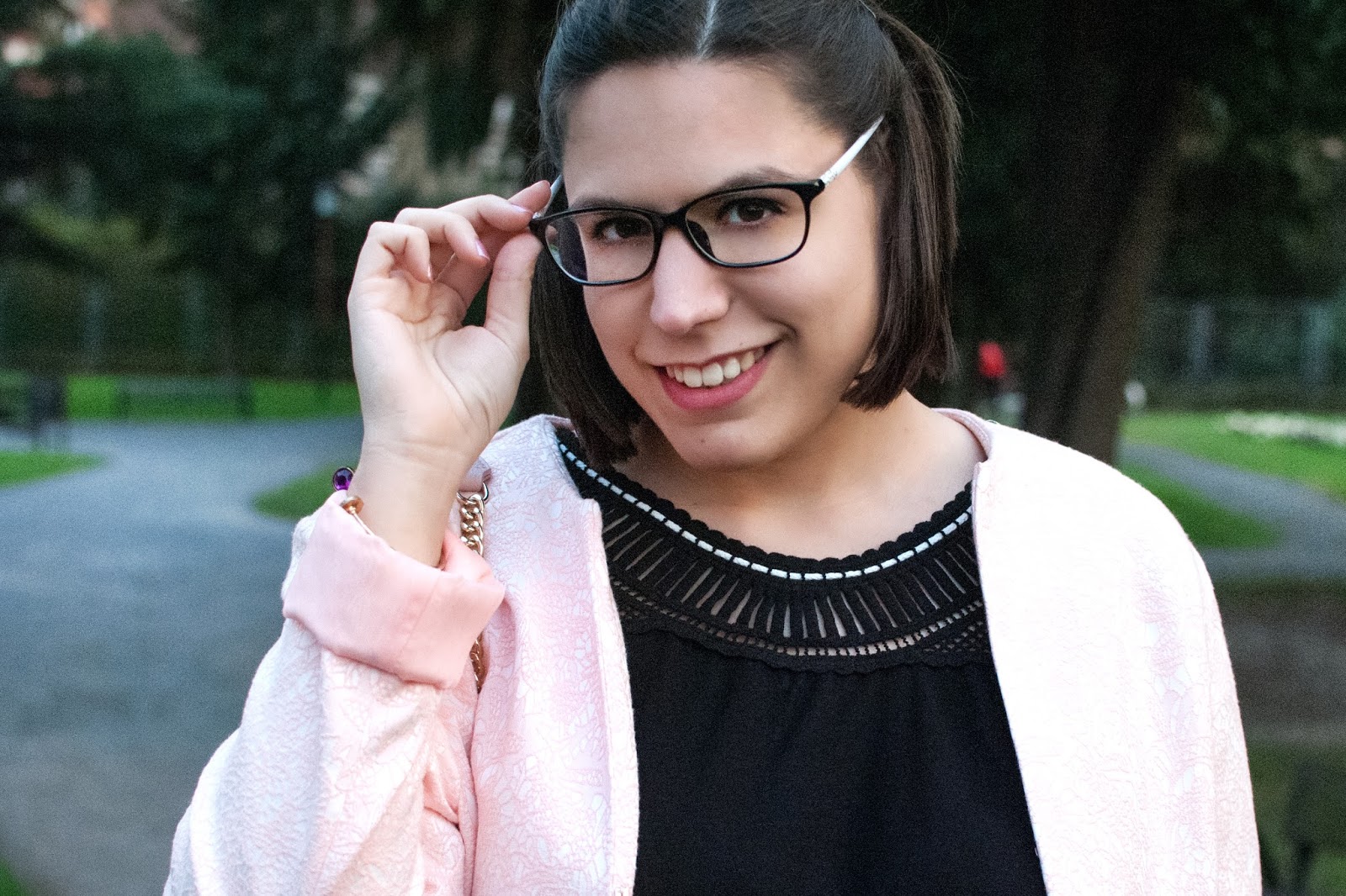 Me encaaanta!!! Estas super guapa!! No soy muy fan del rosa pero en tono pastel me parece ideal para usarlo en complementos y en la temporada que llega. Las gafas son monisimas y estas muy guapa con el nuevo look