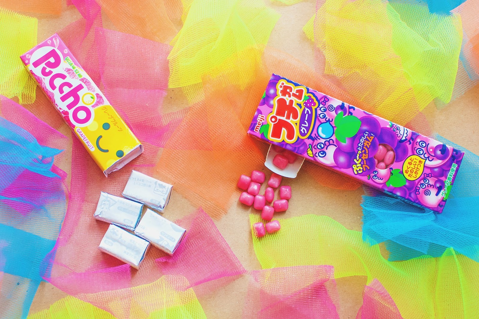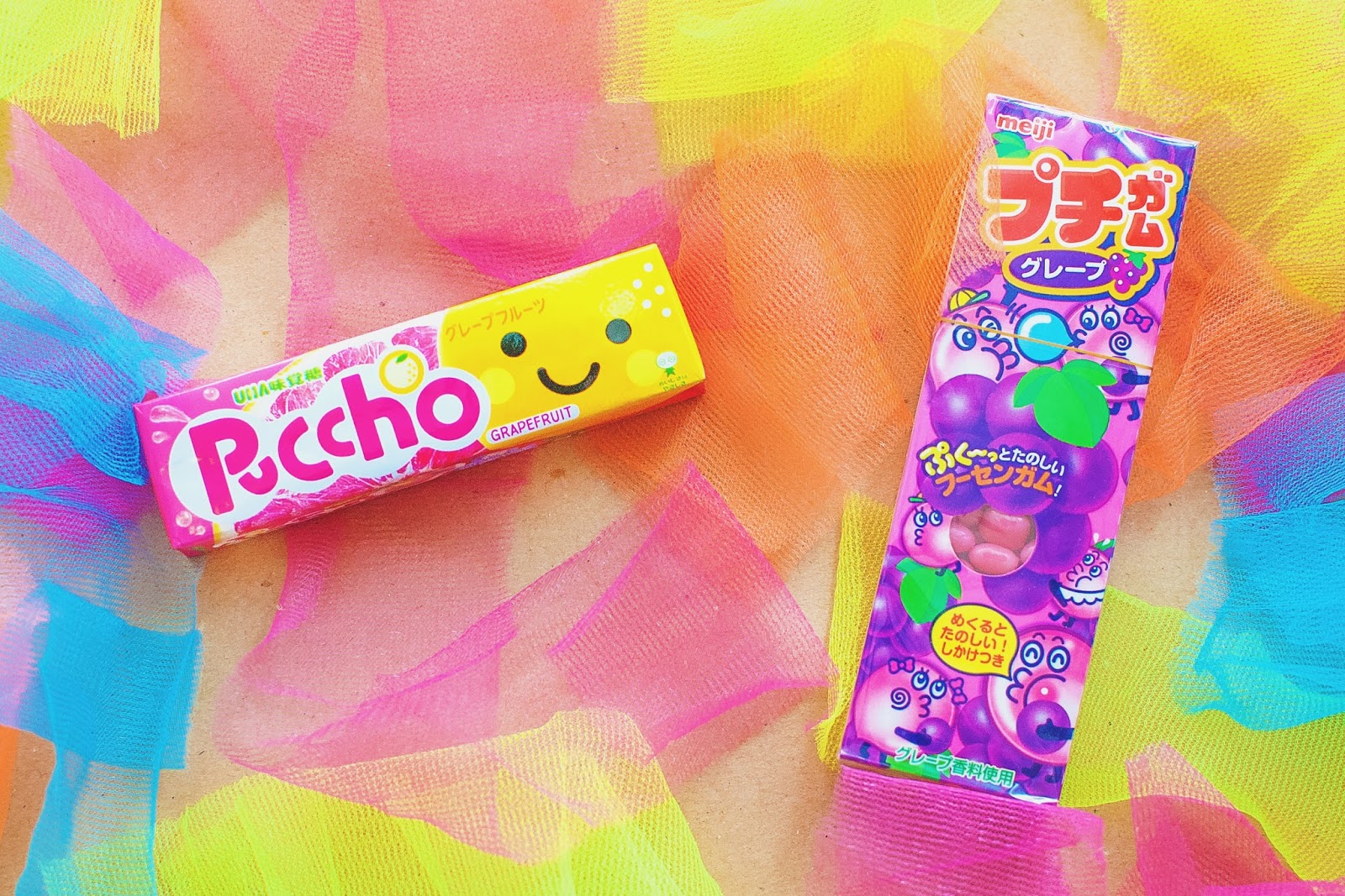 – Puccho pink grapefruit & Meiji Petit Bubble Gum –