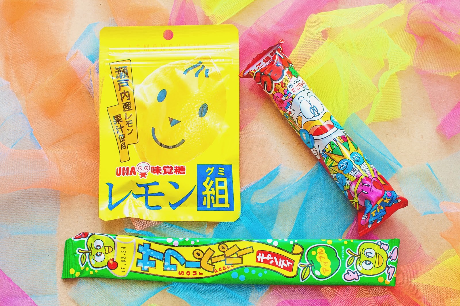 – UHA Lemon Gummy, Yaokin Sweet & Sour Paper Candy, & Yaokin Takoyaki Snack Stick –