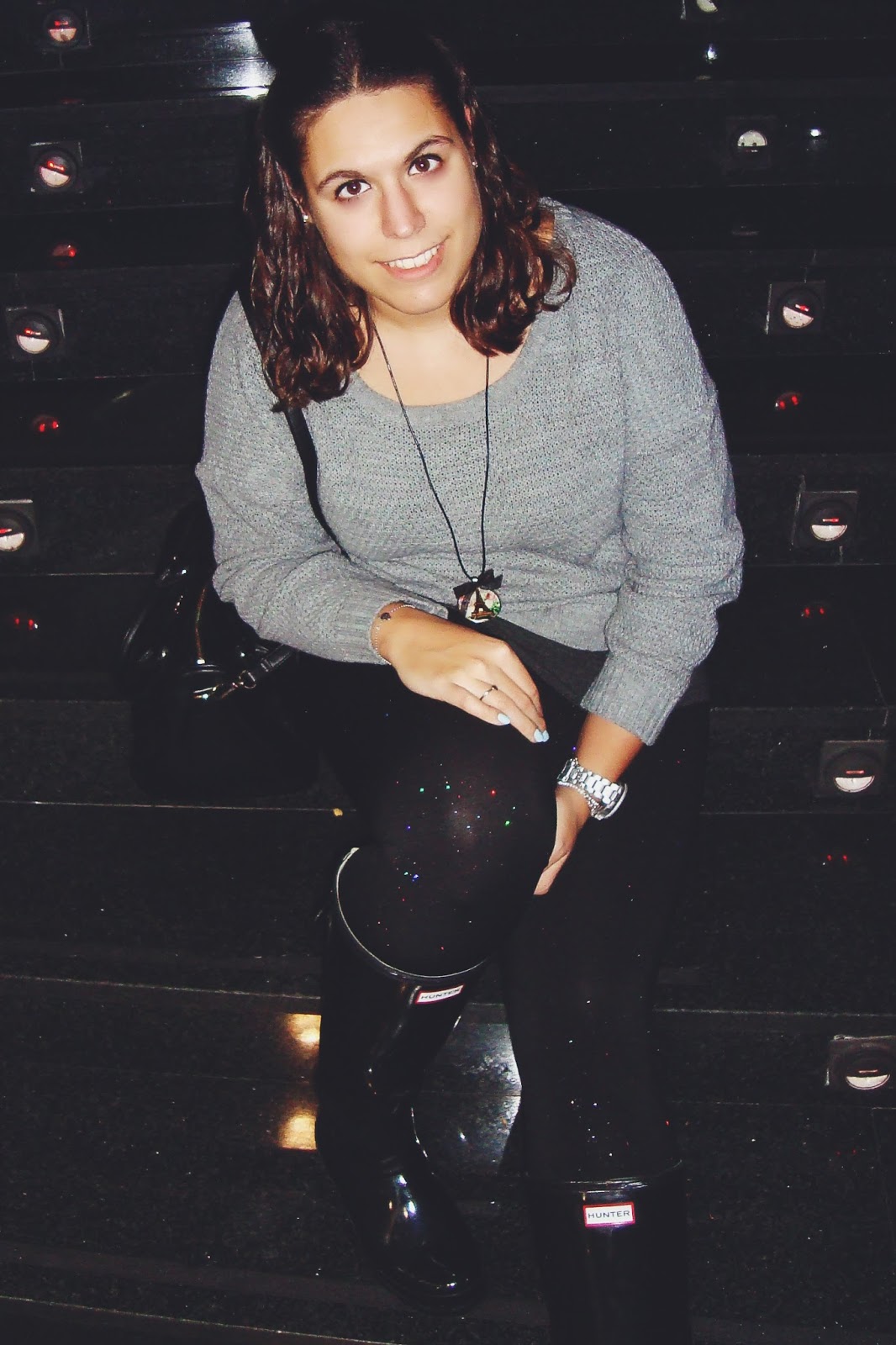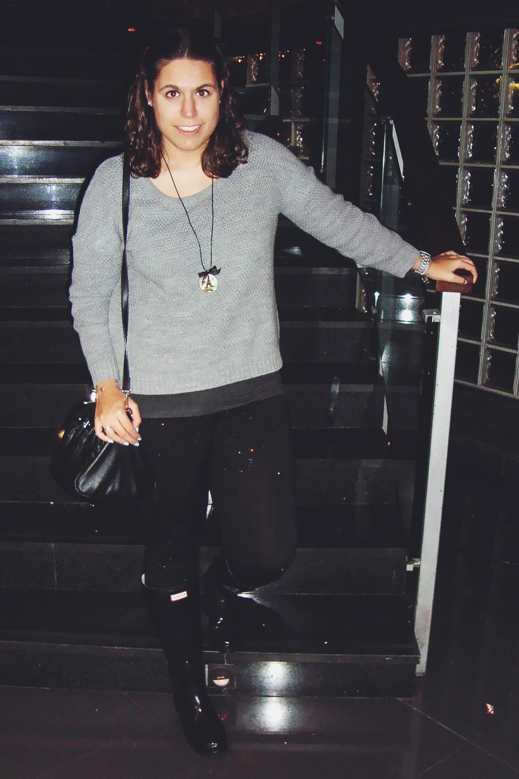 Comienzo febrero ¡brillando! Estos leggins fueron amor a primer vista nada más que los vi en tienda el año pasado, y aunque parezcan muy vistosos, son muy discretitos. Creo que son una alternativa genial a los típicos leggins negros, además me encanta el tacto que tienen. Combinados con un jersey gordote y mis inseparables Hunter en estos días tan invernales, son perfectos para disfrutar de un tranquilo sábado. Espero que os guste 🙂