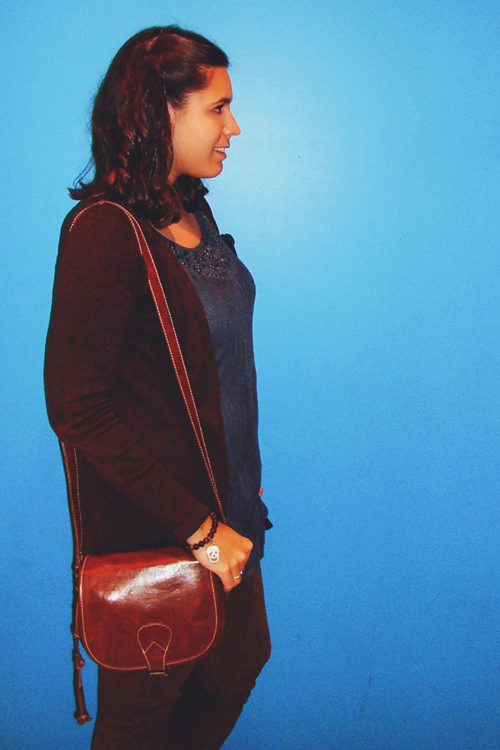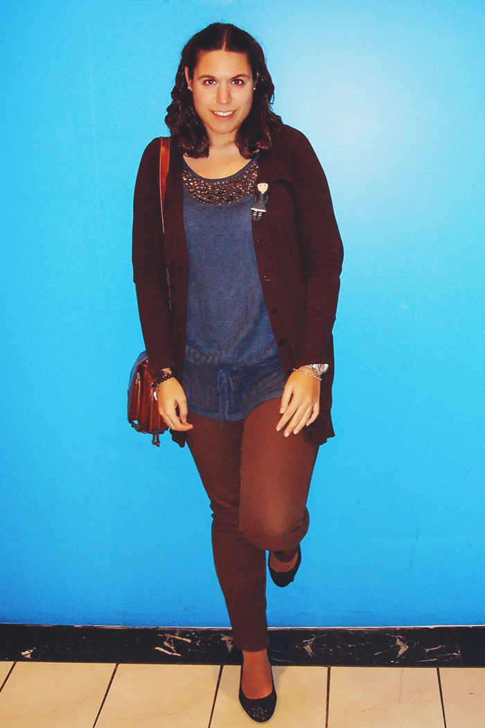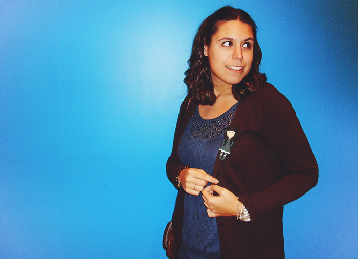 Para despedirme en el blog del otoño, una mezcla de colores muy característica de esta estación: el marrón y el azul marino. ¡Me encanta combinar el marrón con cualquier color! Además por fin pude estrenar mis nuevas bailarinas de Lefties (otro par más de los muchos que tengo, adoro este tipo de zapatos, y más si una es bastante alta como en mi caso); las compré en el Black Friday aprovechando que estaba todo al 30%… pero es que no me pude resistir. ¡Fue amor a primera vista! Como veis, también me puse uno de mis broches preferidos, de la muñequita que más de moda está ahora, Gorjuss. Me requetencanta, tiene una carita adorable y soy súper fan de todo lo que hay de ella, desde las libretitas hasta los bolsos. A ver si Papá Noel o los Reyes Magos son buenos (yo lo he sido mucho) y me dejan algo de ella ♥
