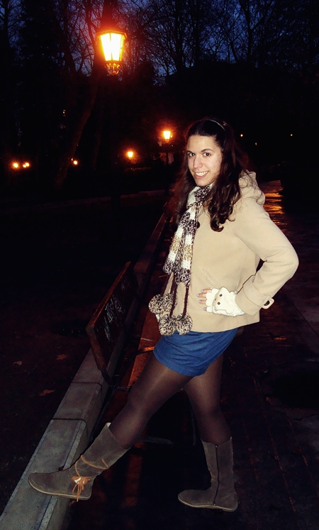 En mi outfit de hoy el color que predomina es el marrón. Me encanta utilizarlo en esta época del año (también en otoño, por supuesto) junto con el negro. La pena es que la foto en la que salgo con el gorrito sale muy borrosa… jo, yo quería enseñárosla. Otra vez será :3 Y cómo no, llevo mi magnífico jerseycito con el estampado de París, me tiene enamorada <3
